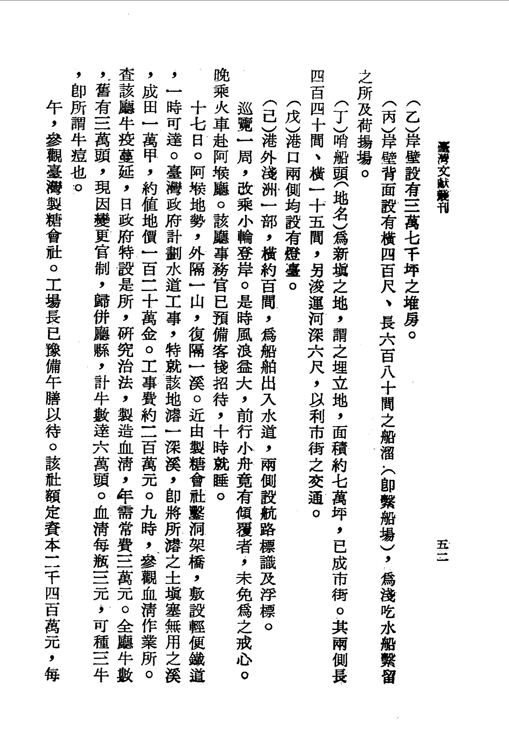九時,參觀血清作業所。查該廳牛疫蔓延,日政府特設是所,研究治法,製造血清,年需常費三萬元。全廳牛數,舊有三萬頭,現因變更官制,歸併廳縣,計牛數達六萬頭。血清每瓶三元,可種三牛,即所謂牛痘也。