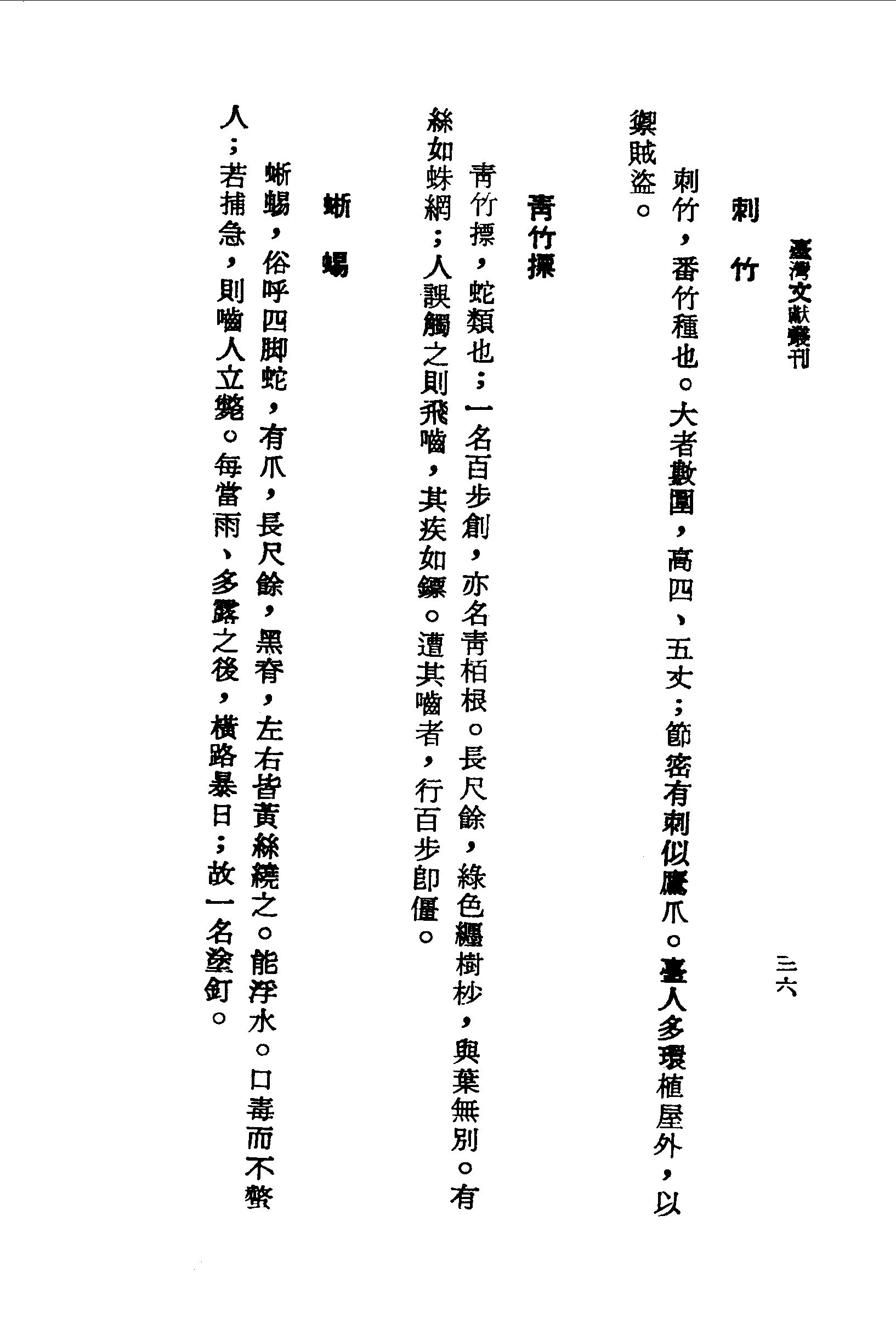 青竹摽,蛇類也;一名百步創,亦名青栢根。長尺餘,綠色纏樹杪,與葉無別。有絲如蛛網;人誤觸之則飛嚙,其疾如鏢。遭其嚙者,行百步即僵。