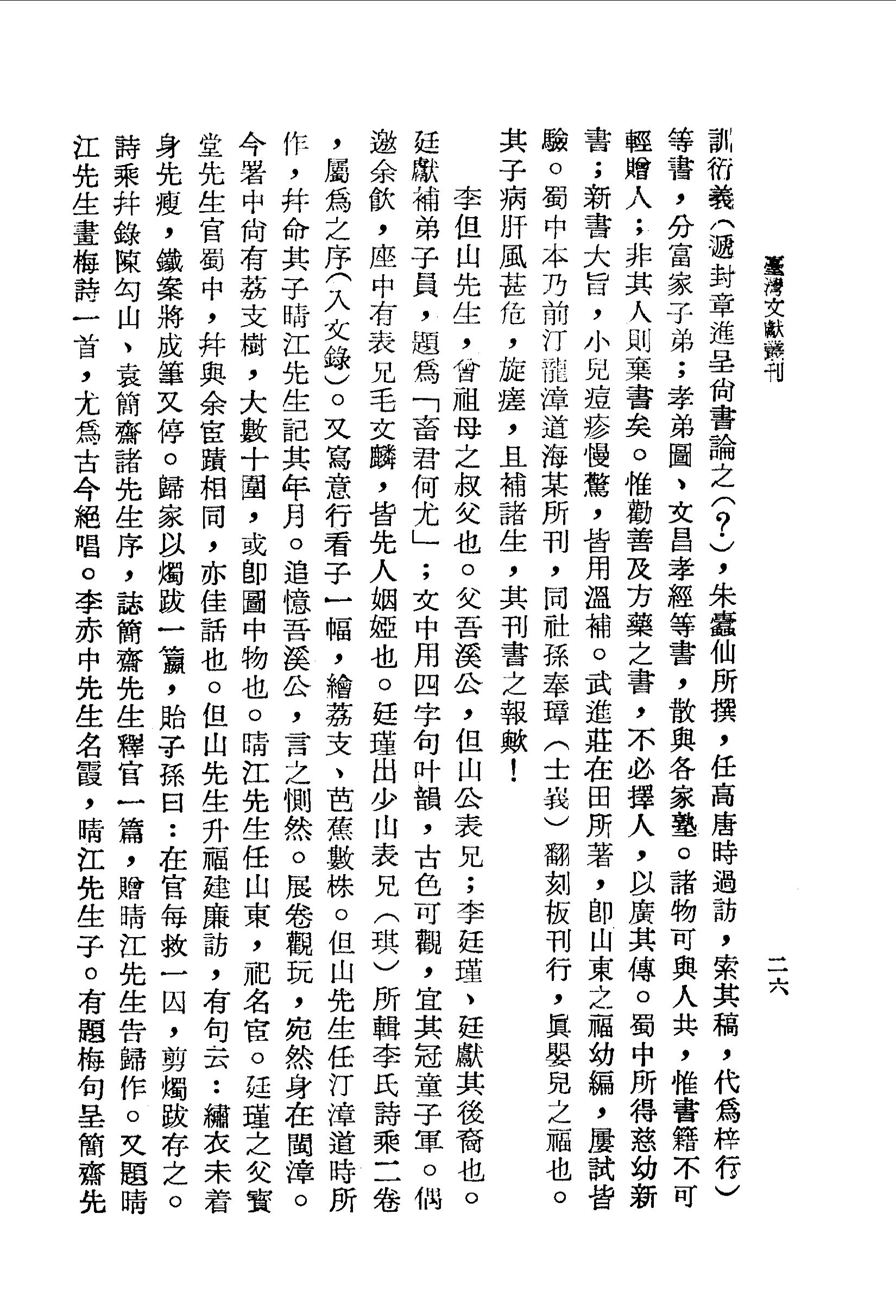 諸物可與人共,惟書籍不可輕贈人;非其人則棄書矣。惟勸善及方藥之書,不必擇人,以廣其傳。蜀中所得慈幼新書;新書大旨,小兒痘疹慢驚,皆用溫補。武進莊在田所著,即山東之福幼編,屢試皆驗。蜀中本乃前汀龍漳道海某所刊,同社孫奉璋(士峩)翻刻板刊行,真嬰兒之福也。其子病肝風甚危,旋瘥,且補諸生,其刊書之報歟!