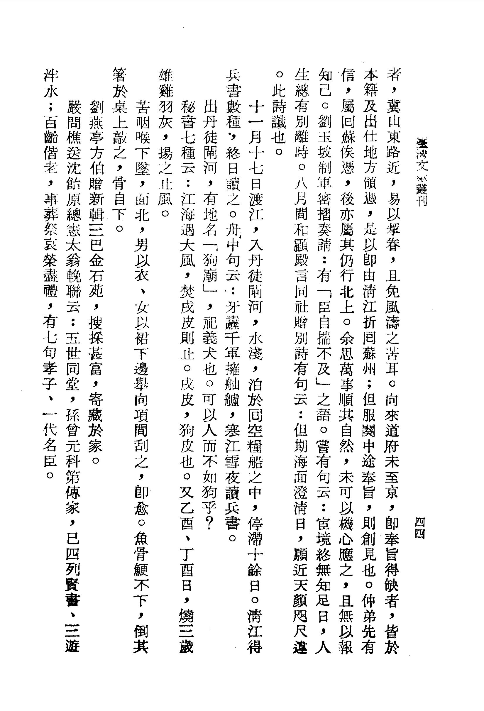 夜方食,袁偶思飲,誤取王酒;斟未半,姪孫坤圖至,并嘗之。時海兒在別船呼袁去,客有張姓者來,又啜之;水手見之,并分餘瀝,皆懵然也。 少頃,王至,曰此非袁酒也。眾始悟其味之不相似也。相從而嘔,終夜有聲,幸皆無恙。向使舉杯之時,無適相值者分而飲之,則中毒必深;非海兄一呼,且三爵未已也。終食之間,四命之存亡係焉,其亦有默佑者乎!