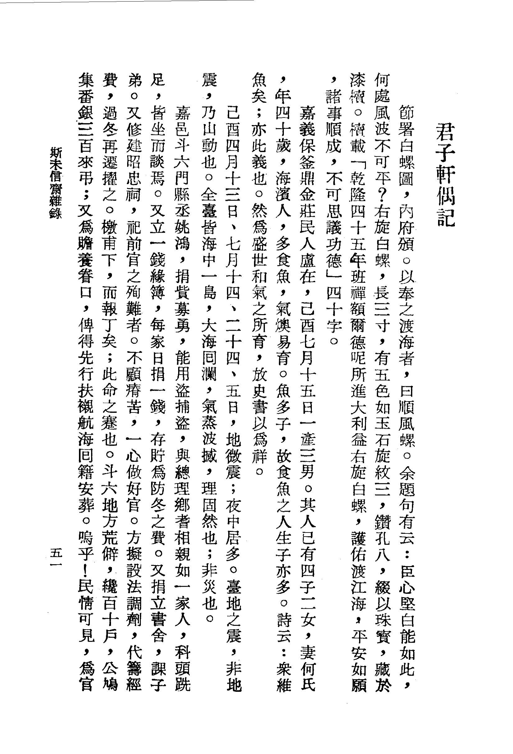 嘉義保釜鼎金莊民人盧在,己酉七月十五日一產三男。其人已有四子二女,妻何氏,年四十歲,海濱人,多食魚,氣燠易育。魚多子,故食魚之人生子亦多。詩云:眾維魚矣;亦此義也。然為盛世和氣之所育,放史書以為祥。