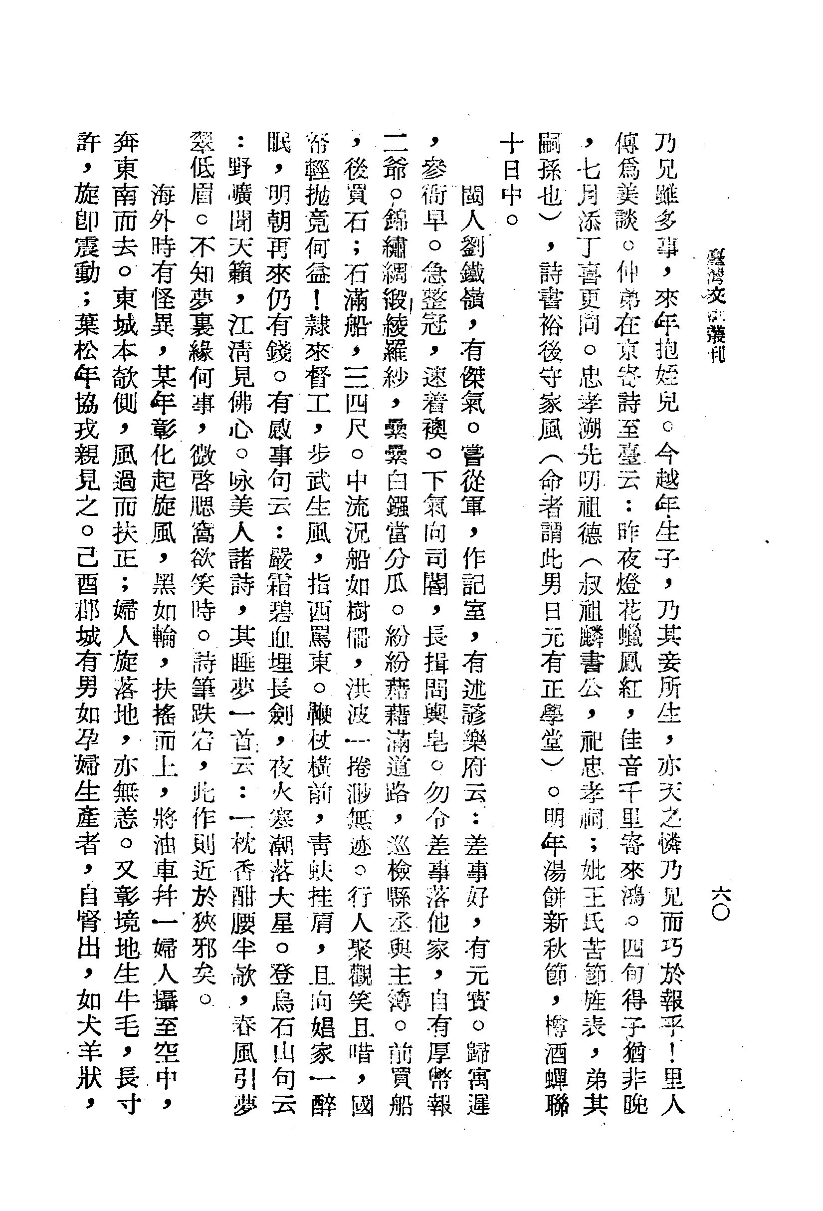 海外時有怪異,某年彰化起旋風,黑如輪,扶搖而上,將油車并一婦人攝至空中,奔東南而去。東城本欹側,風過而扶正;婦人旋落地,亦無恙。又彰境地生牛毛,長寸許,旋即震動;葉松年協戎親見之。己酉郡城有男如孕婦生產者,自腎出,如犬羊狀,但細小耳。