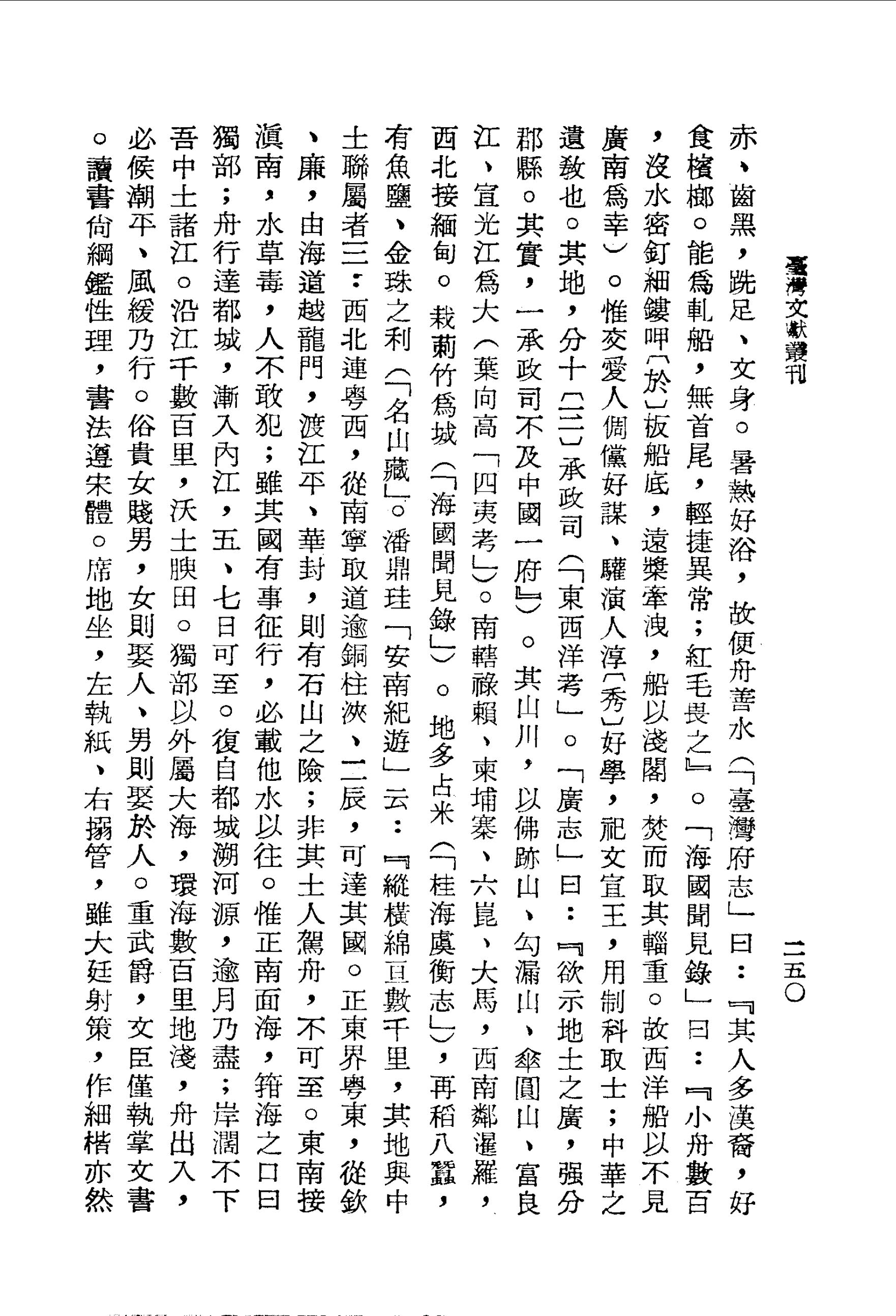 潘鼎珪「安南紀遊」云:『縱橫綿亙數千里,其地與中土聯屬者三:西北連粵西,從南寧取道逾銅柱浹、二辰,可達其國。正東界粵東,從欽、廉,由海道越龍門,渡江平、華封,則有石山之險;非其土人駕舟,不可至。東南接滇南,水草毒,人不敢犯;雖其國有事征行,必載他水以往。惟正南面海,箝海之口曰獨部;舟行達都城,漸入內江,五、七日可至。復自都城溯河源,逾月乃盡;岸闊不下吾中土諸江。沿江千數百里,沃土腴田。獨部以外屬大海,環海數百里地淺,舟出入,必候潮平、風緩乃行。