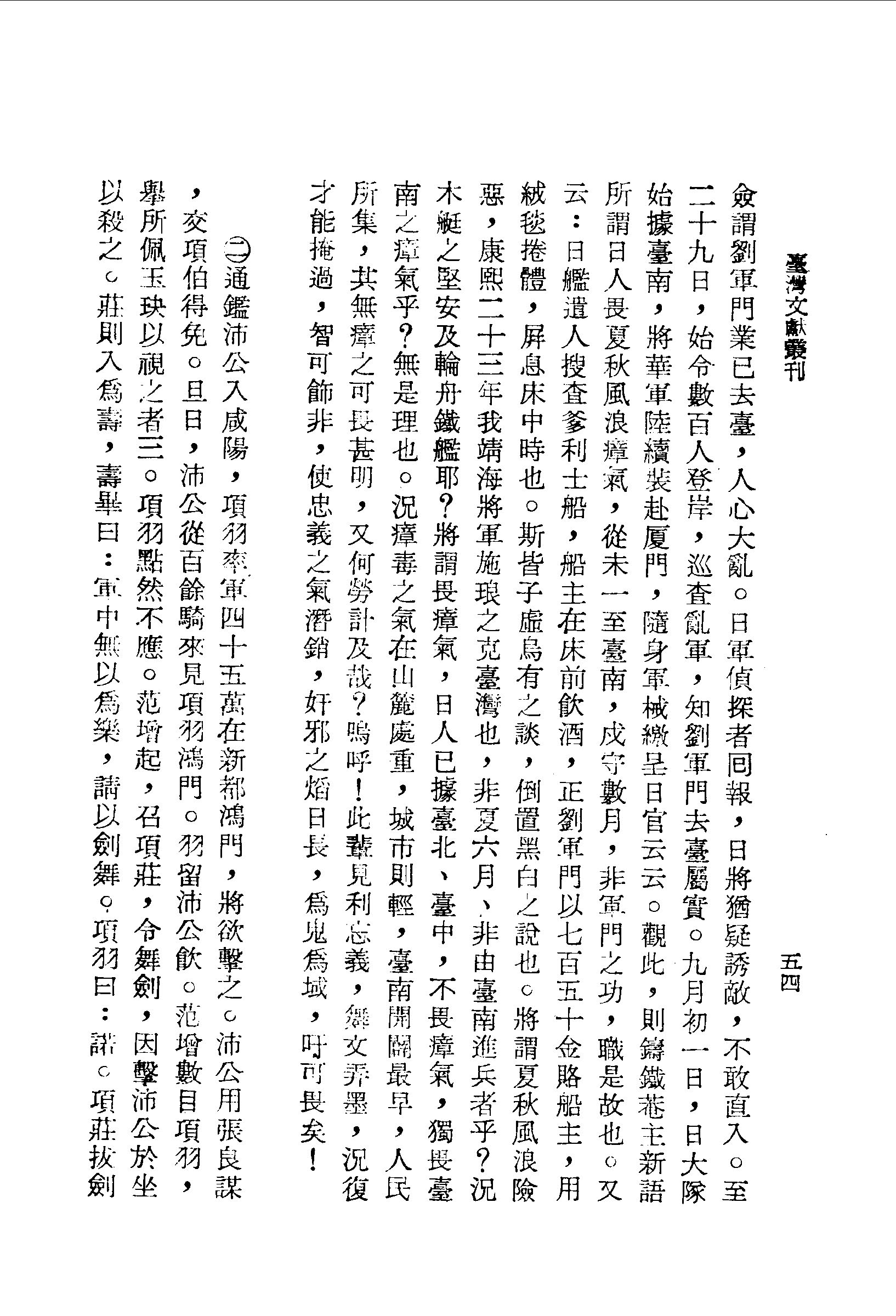 日軍偵探者回報,日將猶疑誘敵,不敢直入。至二十九日,始令數百人登岸,巡查亂軍,知劉軍門去臺屬實。九月初一日,日大隊始據臺南,將華軍陸續裝赴廈門,隨身軍械繳呈日官云云。觀此,則鑄鐵菴主新語所謂日人畏夏秋風浪瘴氣,從未一至臺南,戍守數月,非軍門之功,職是故也。