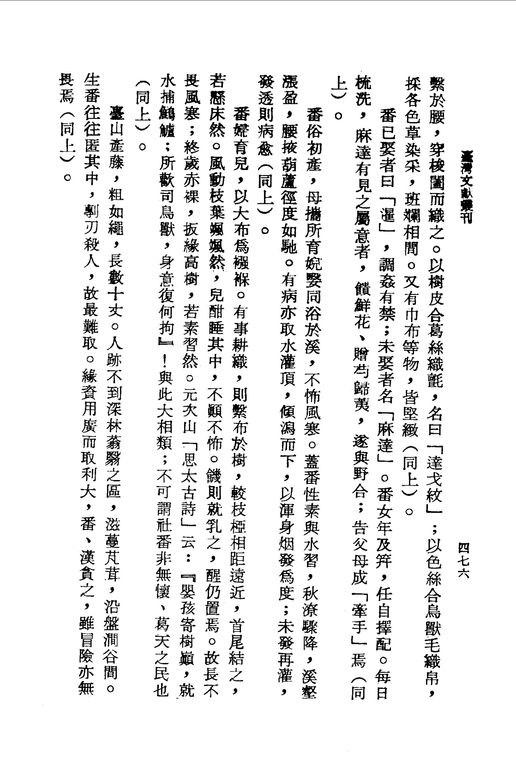 番俗初產,母攜所育婗嫛同浴於溪,不怖風寒.蓋番性素與水習,秋潦驟降,溪壑漲盈,腰掖葫蘆徑度如馳.有病亦取水灌頂,傾潟而下,以渾身烟發為度;未發再灌,發透則病愈(同上)。