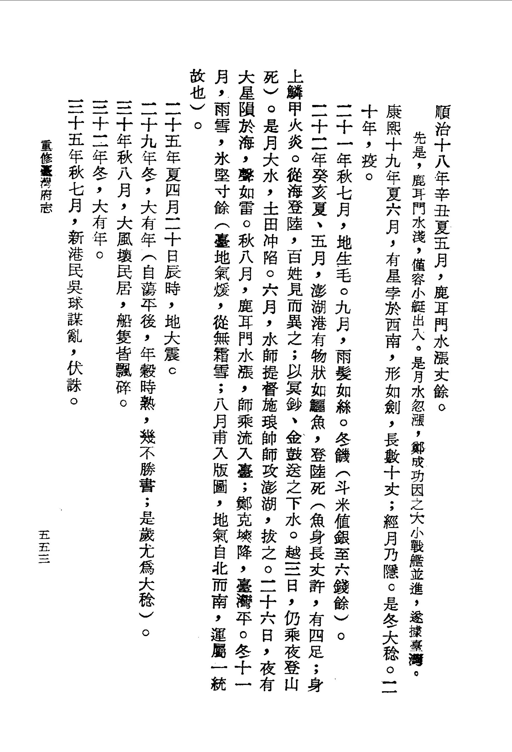康熙十九年夏六月,有星孛於西南,形如劍,長數十丈;經月乃隱.是冬大稔.二十年,疫.