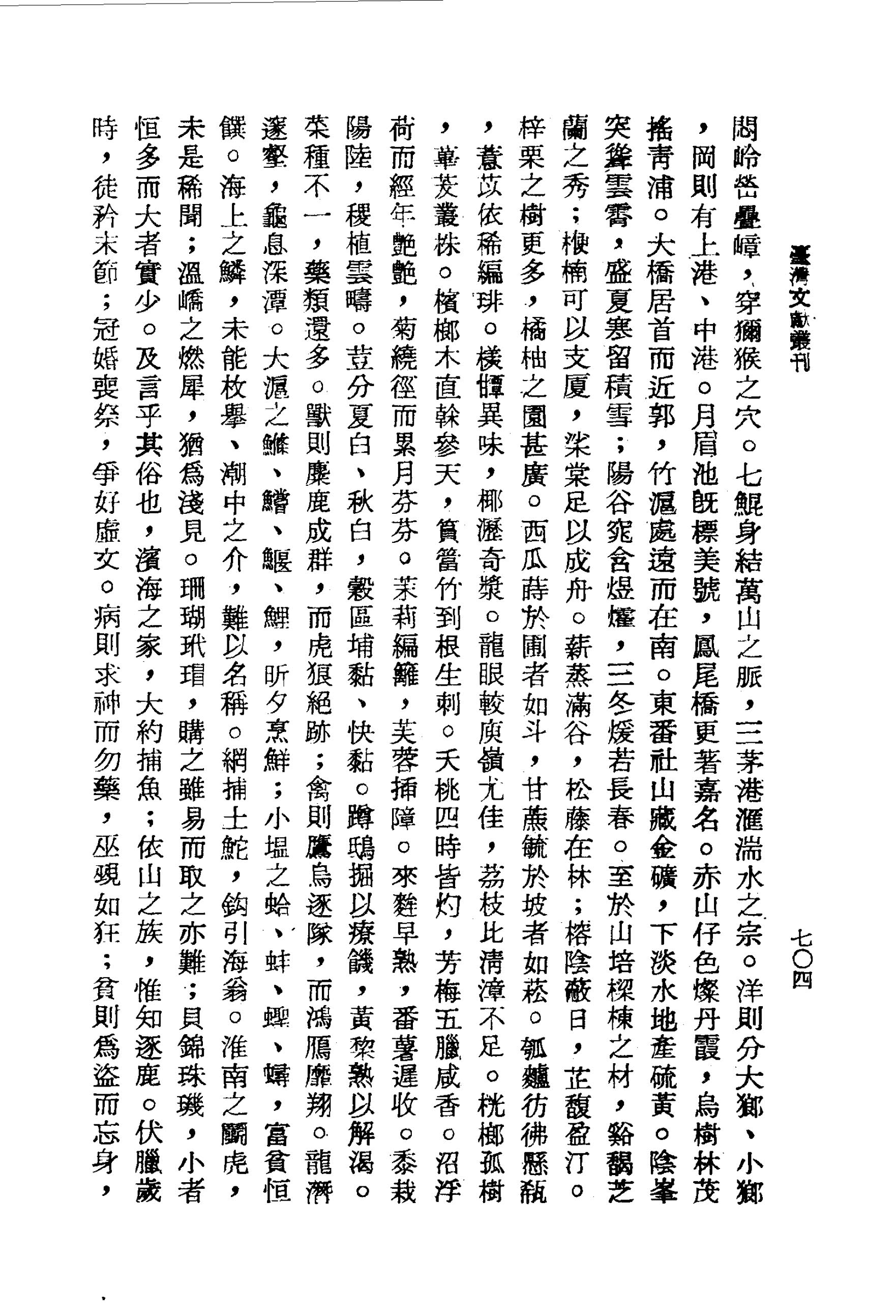 來麰早熟,番薯遲收,黍栽陽陸,稷植雲疇。荳分夏白、秋白,穀區埔黏、快黏。蹲鴟掘以療饑,黃棃熟以解渴。菜種不一,藥類還多。