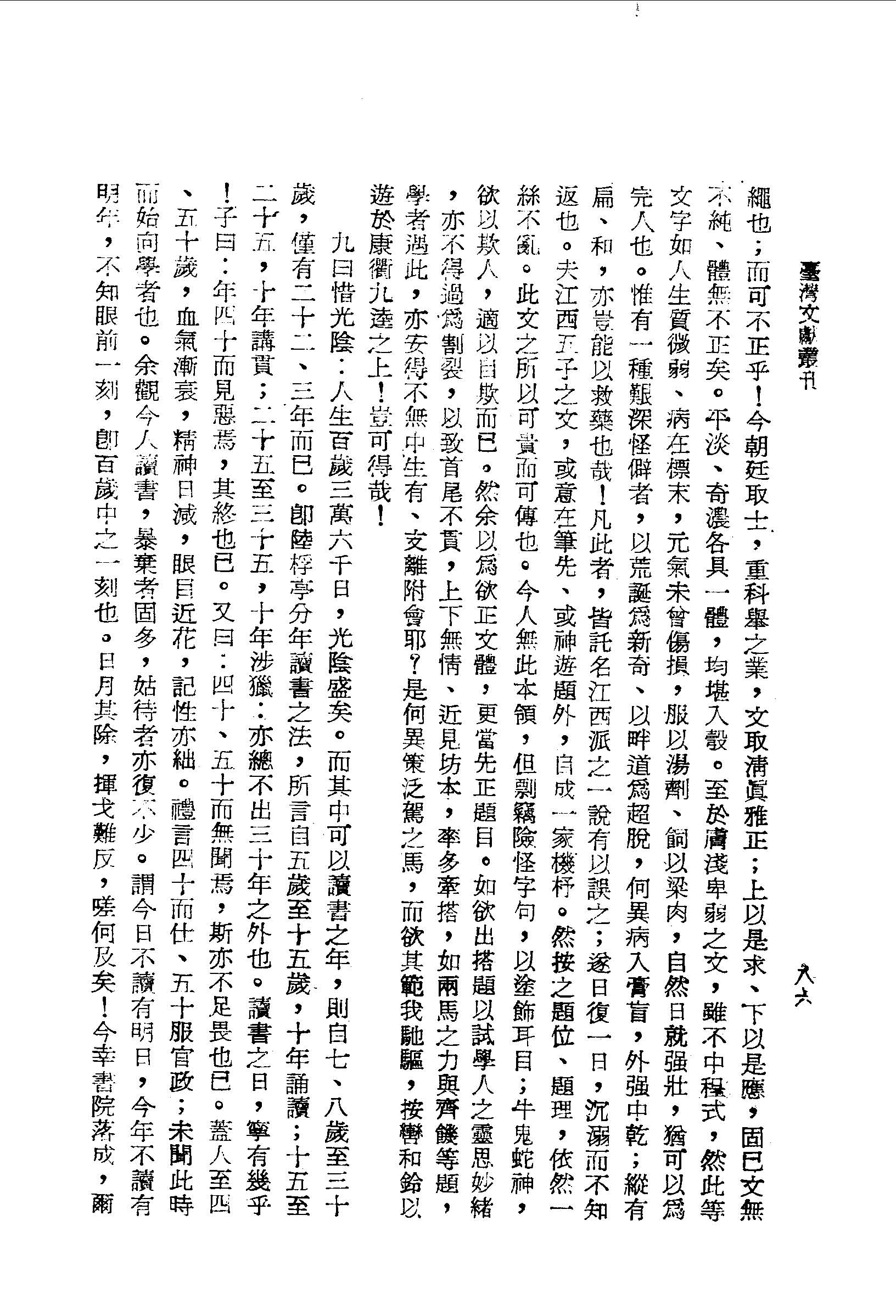 至於膚淺卑弱之文,雖不中程式,然此等文字如人生質微弱、病在標末,元氣未曾傷損,服以湯劑、飼以梁肉,自然日就強壯,猶可以為完人也。惟有一種艱深怪僻者,以荒誕為新奇、以畔道為超脫,何異病入膏肓,外強中乾;縱有扁、和,亦豈能以救藥也哉!