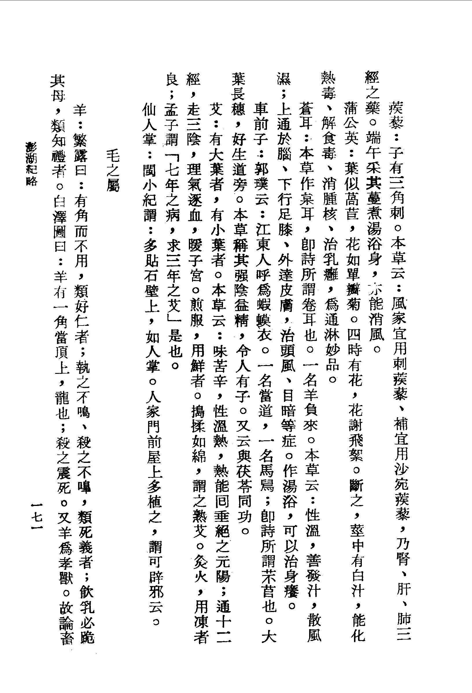 蒺藜:子有三角刺.本草云:風家宜用刺蒺藜、補宜用沙宛蒺藜,乃腎、肝、肺三經之藥。端午采其蔓煮湯浴身,亦能消風。
