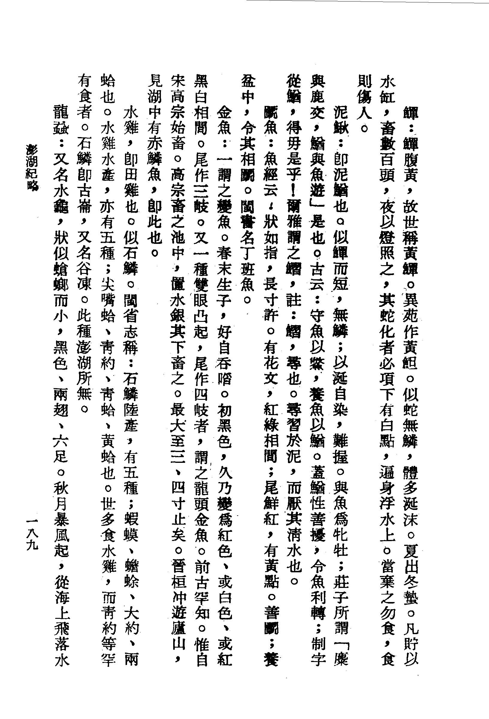鱓:鱓腹黃,故世稱黃鱓.異苑作黃□.似蛇無鱗,體多涎沫.夏出冬蟄.凡貯以水缸,畜數百頭,夜以燈照之,其蛇化者必項下有白點,遍身浮水上。當棄之勿食,食則傷人。