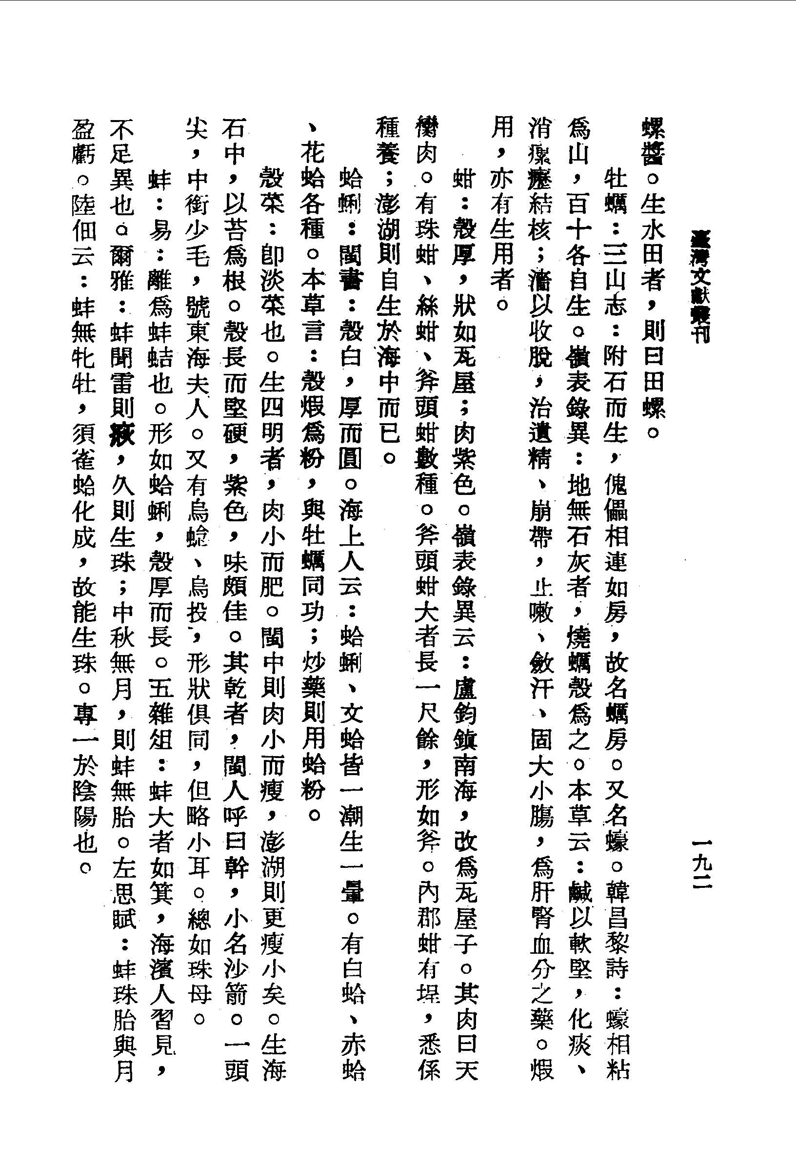 牡蠣:三山志:附石而生,傀儡相連如房,故名蠣房.又名蠔.韓昌黎詩:蠔相粘為山,百十各自生.嶺表錄異:地無石灰者,燒蠣殼為之.本草云:鹹以軟堅,化痰、消瘰癧結核;濇以收脫,治遺精、崩帶,止嗽、斂汗、固大小腸,為肝腎血分之藥.煆用,亦有生用者。