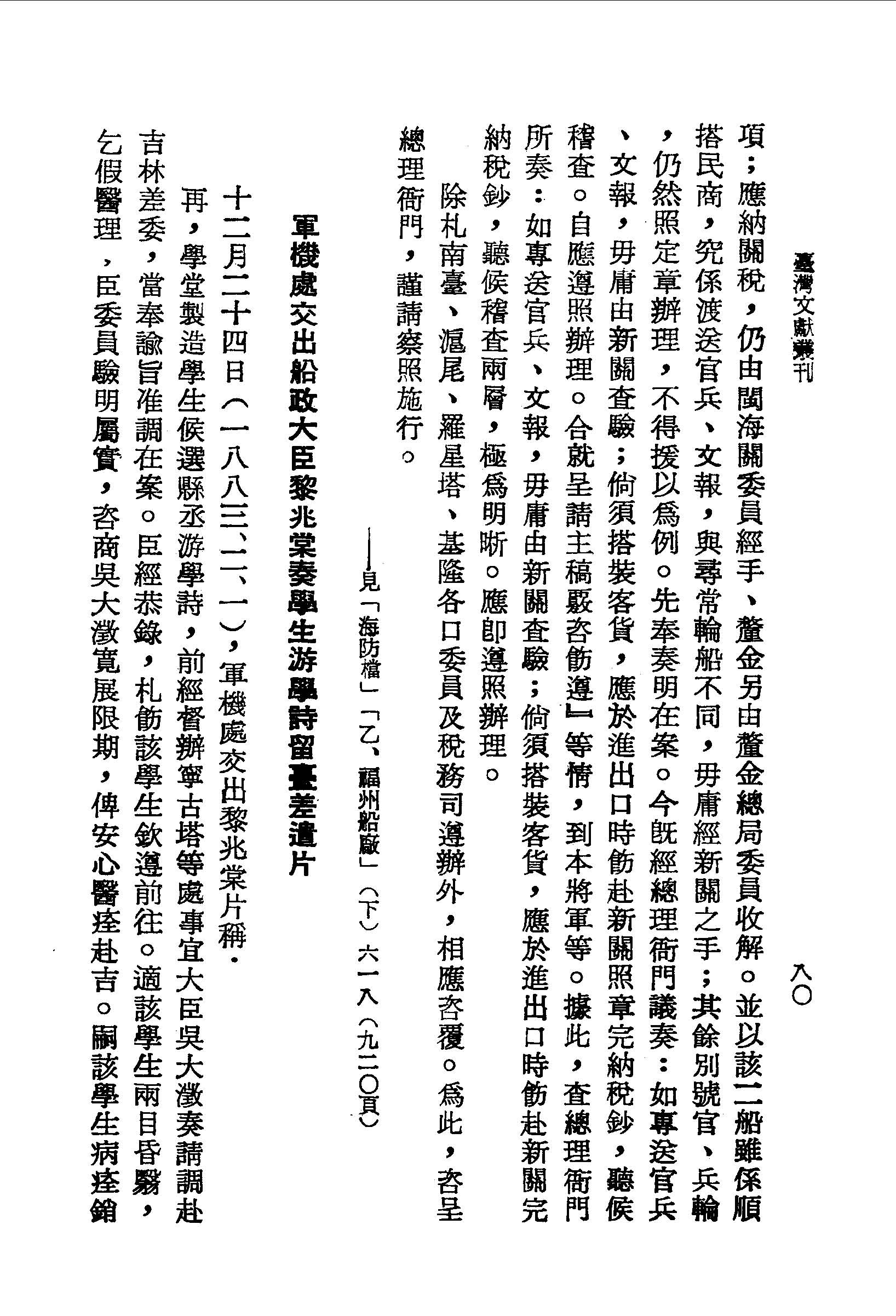 再,學堂製造學生候選縣丞游學詩,前經督辦寧古塔等處事宜大臣吳大澂奏請調赴吉林差委,當奉諭旨准調在案。臣經恭錄,札飭該學生欽遵前往。適該學生兩目昏翳,乞假醫理;臣委員驗明屬實,咨商吳大澂寬展限期,俾安心醫痊赴吉。
