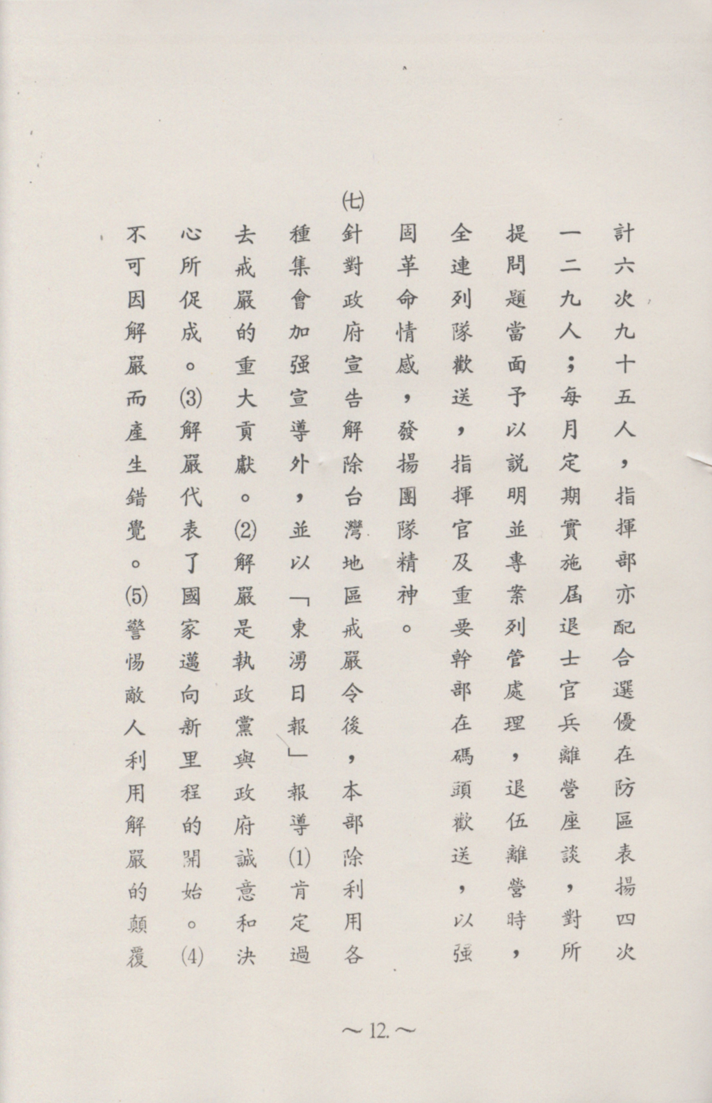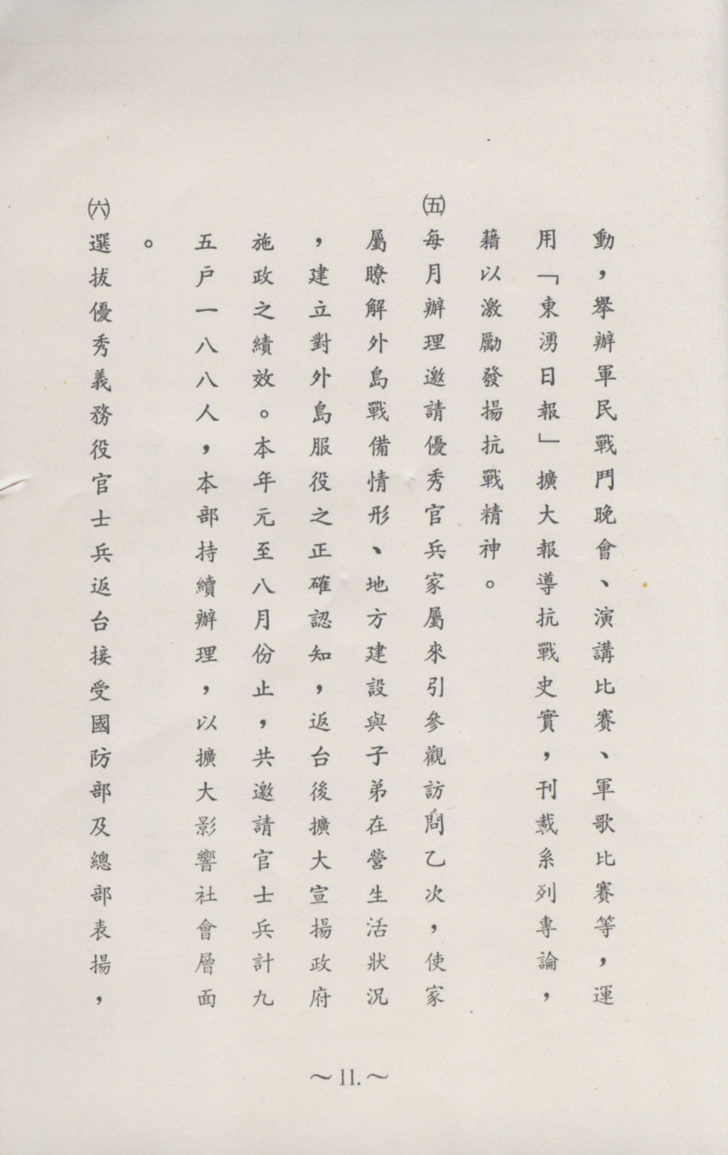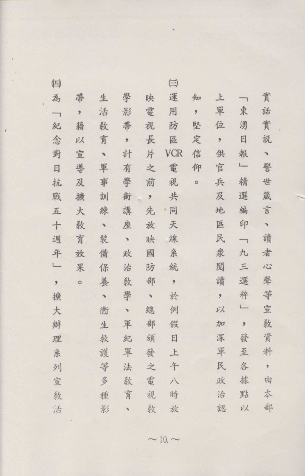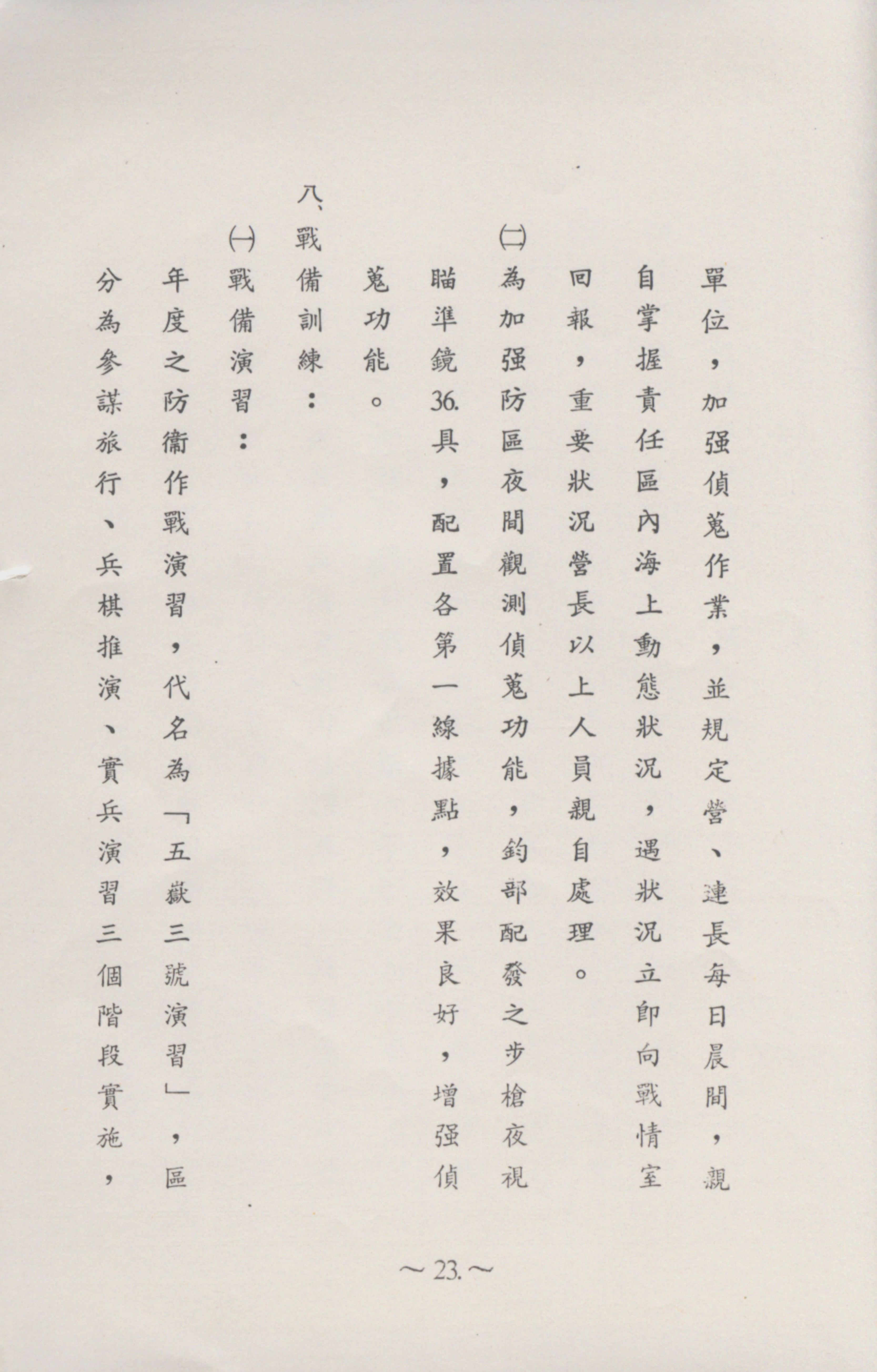 本文以陸軍東引地區指揮部隊史館收藏之隊史書冊及相關文件作為撰寫依據,參考自民國76年(1987)的陸軍反共救國軍指揮部恭迎總司令蔣仲苓上將視察簡報。簡報內容分兩大重點,分別是前次視察受指示須執行事項,以及重大工作執行概況。為指認與研究陸軍反共救國軍發展沿革之重要文本之一。