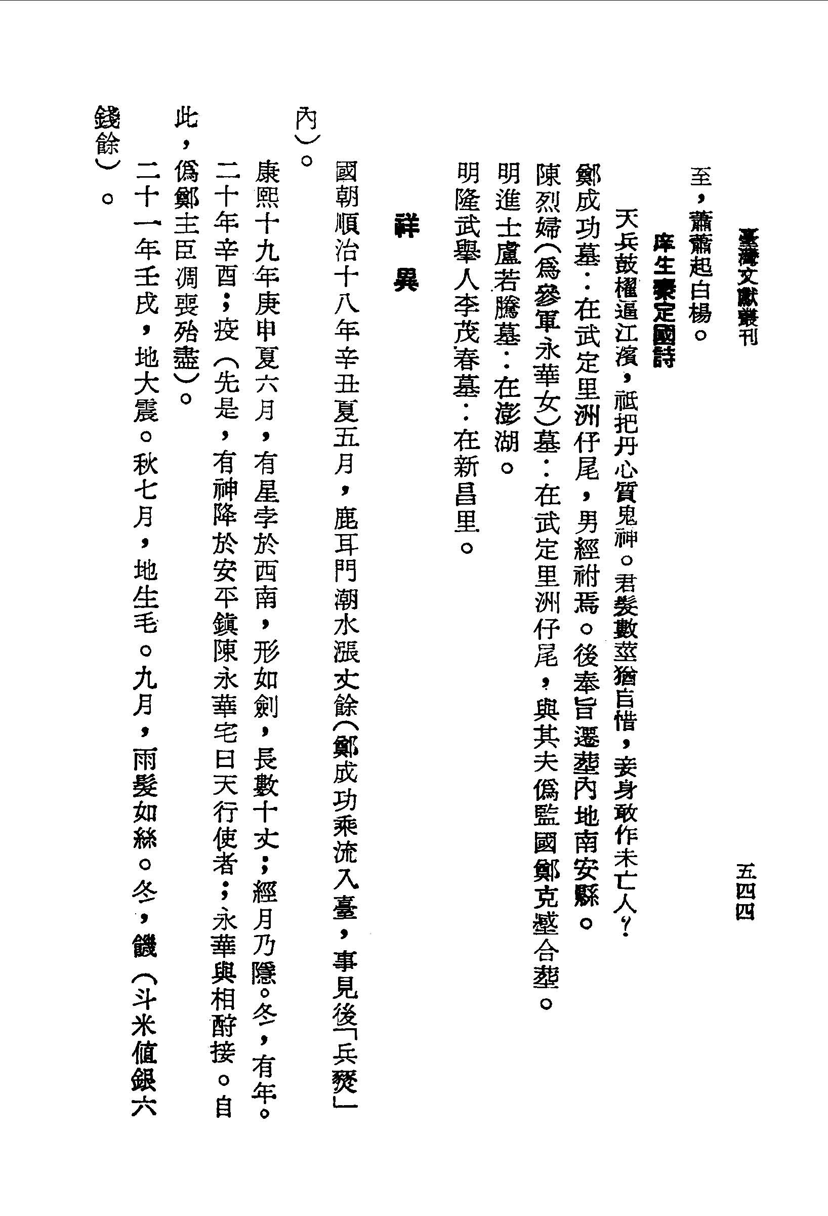二十年辛酉;疫(先是,有神降於安平鎮陳永華宅曰天行使者;永華與相酧接。自此,偽鄭主臣凋喪殆盡)。