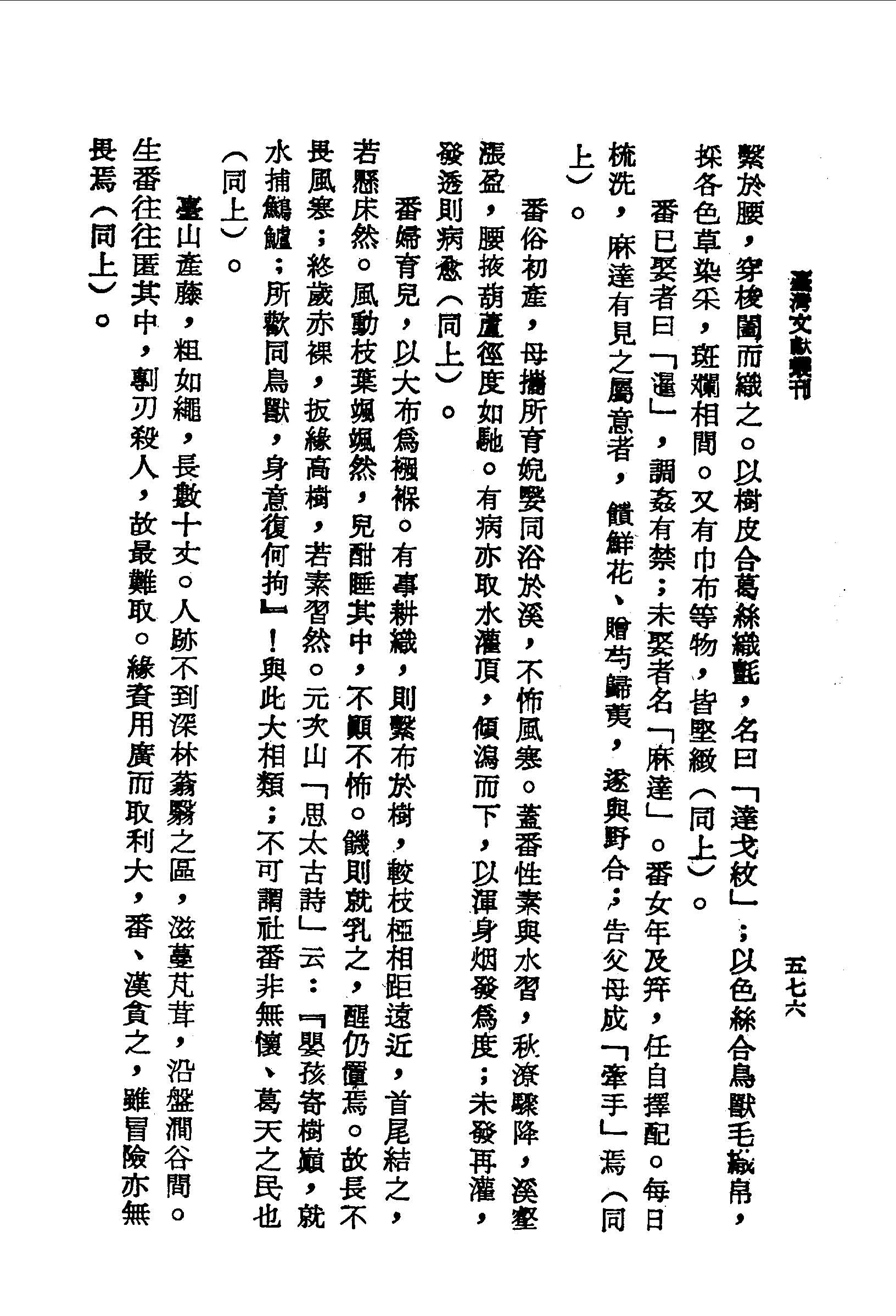 番俗初產,母攜所育婗嫛同浴於溪,不怖風寒.蓋番性素與水習,秋潦驟降,溪壑漲盈,腰掖葫蘆徑度如馳.有病亦取水灌頂,傾潟而下,以渾身烟發為度;未發再灌,發透則病愈(同上)。