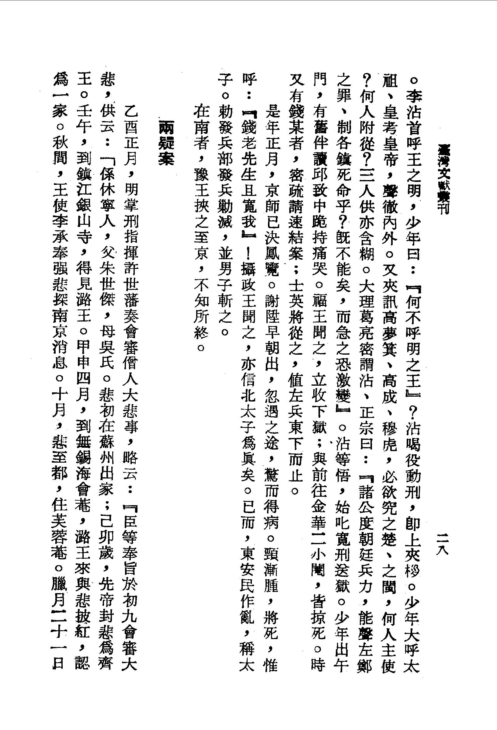 是年正月,京師已決鳳覽。謝陞早朝出,忽遇之途,驚而得病。頸漸腫,將死,惟呼:『錢老先生且寬我』!攝政王聞之,亦信北太子為真矣。已而,東安民作亂,稱太子。敕發兵部發兵勦滅,並男子斬之。在南者,豫王挾之至京,不知所終。