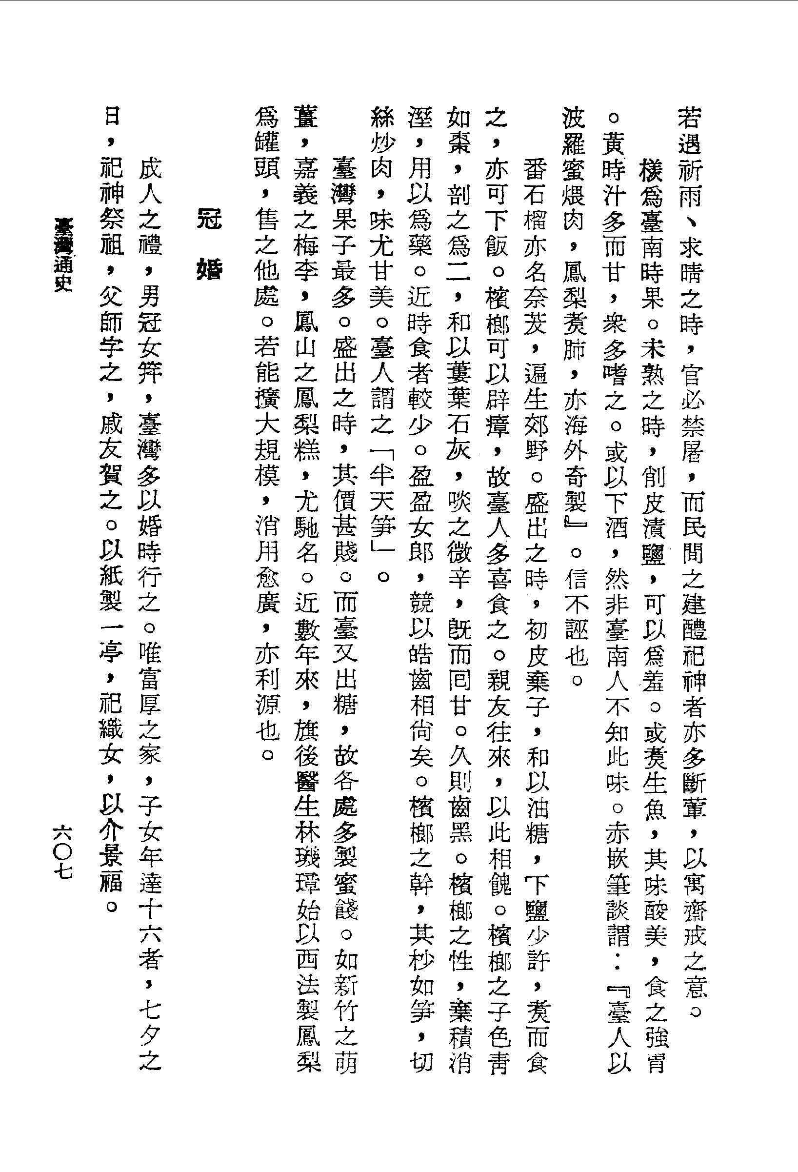 檳榔可以辟瘴,故臺人多喜食之。親友往來,以此相餽。檳榔之子色青如棗,剖之為二,和以蔞葉石灰,啖之微辛,既而回甘。久則齒黑。檳榔之性,棄積消溼,用以為藥。