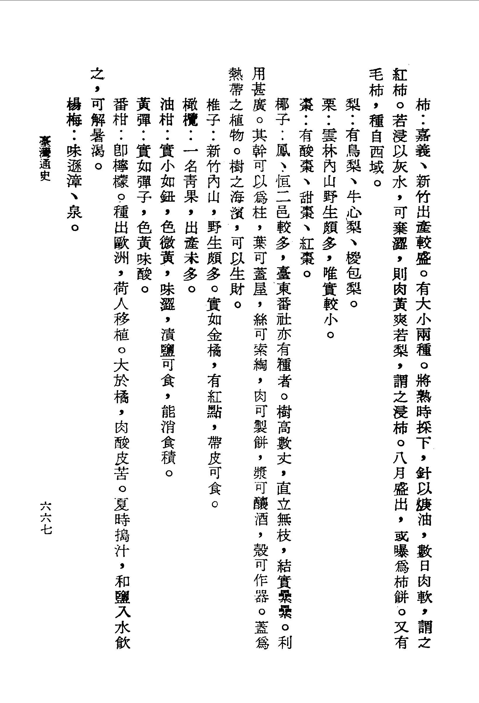 番柑:即檸檬。種出歐洲,荷人移植。大於橘,肉酸皮苦。夏時搗汁,和鹽入水飲之,可解暑渴。