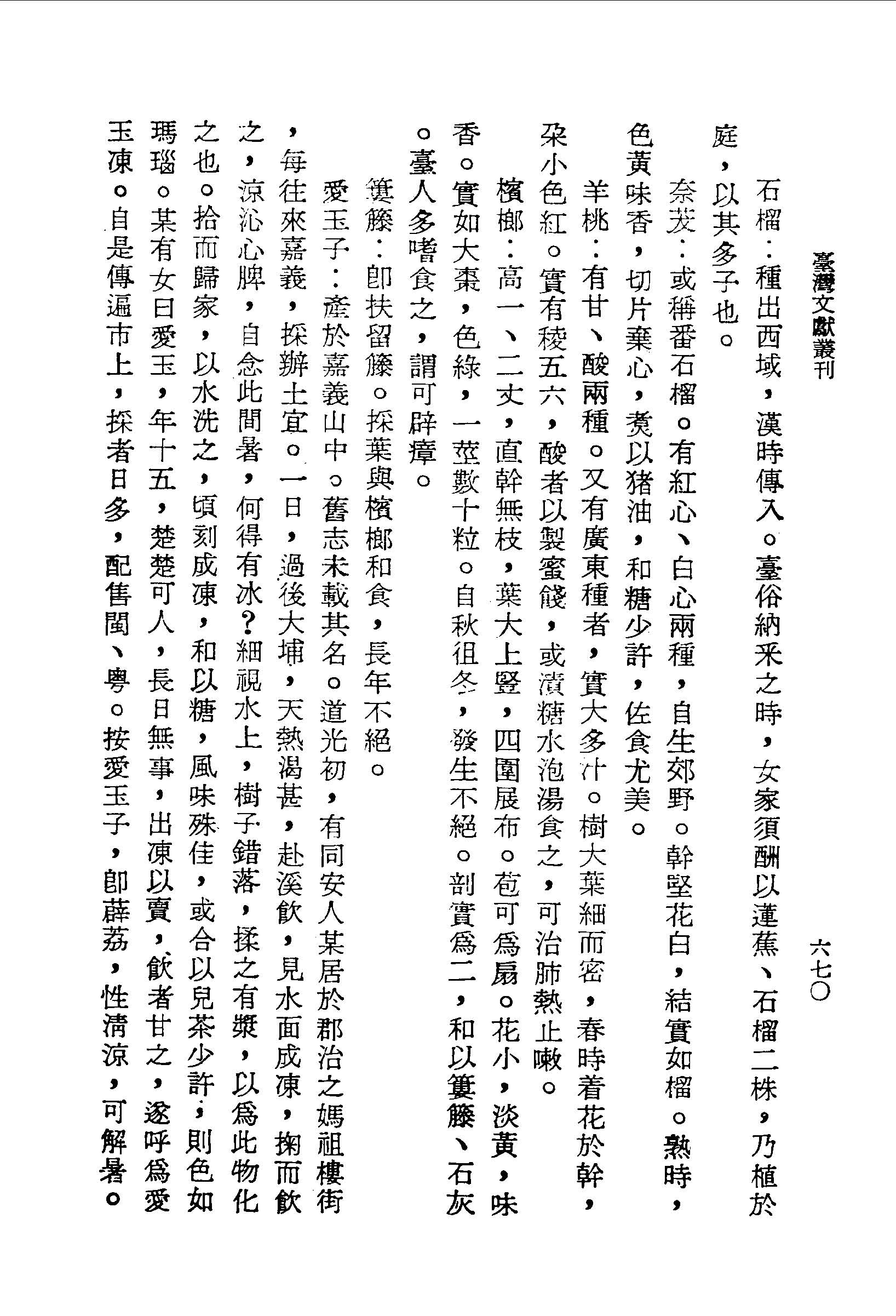 某有女曰愛玉,年十五,楚楚可人,長日無事,出凍以賣,飲者甘之,遂呼為愛玉凍。自是傳遍市上,採者日多,配售閩、粵。按愛玉子,即薜荔,性清涼,可解暑。