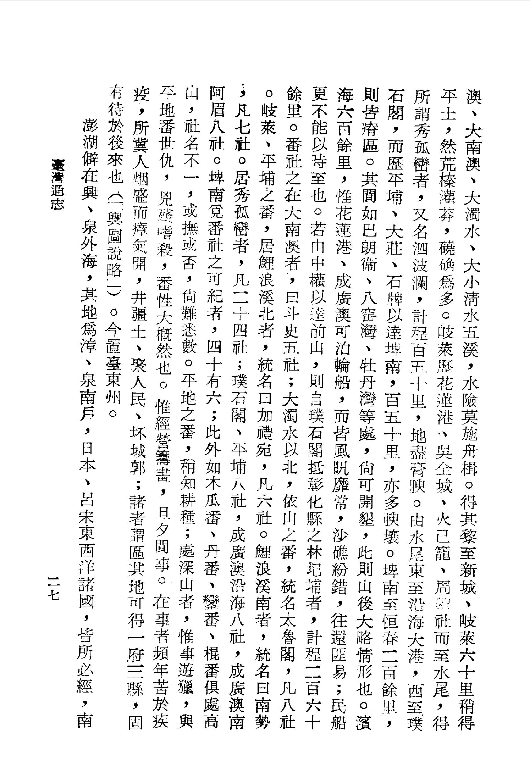 平地之番,稍知耕種;處深山者,惟事遊獵,與平地番世仇,兇殘嗜殺,番性大概然也.惟經營籌畫,旦夕間事.在事者頻年苦於疾疫,所冀人烟盛而瘴氣開,井疆土、聚人民、坏城郭;諸者謂區其地可得一府三縣,固有待於後來也(「輿圖說略」).