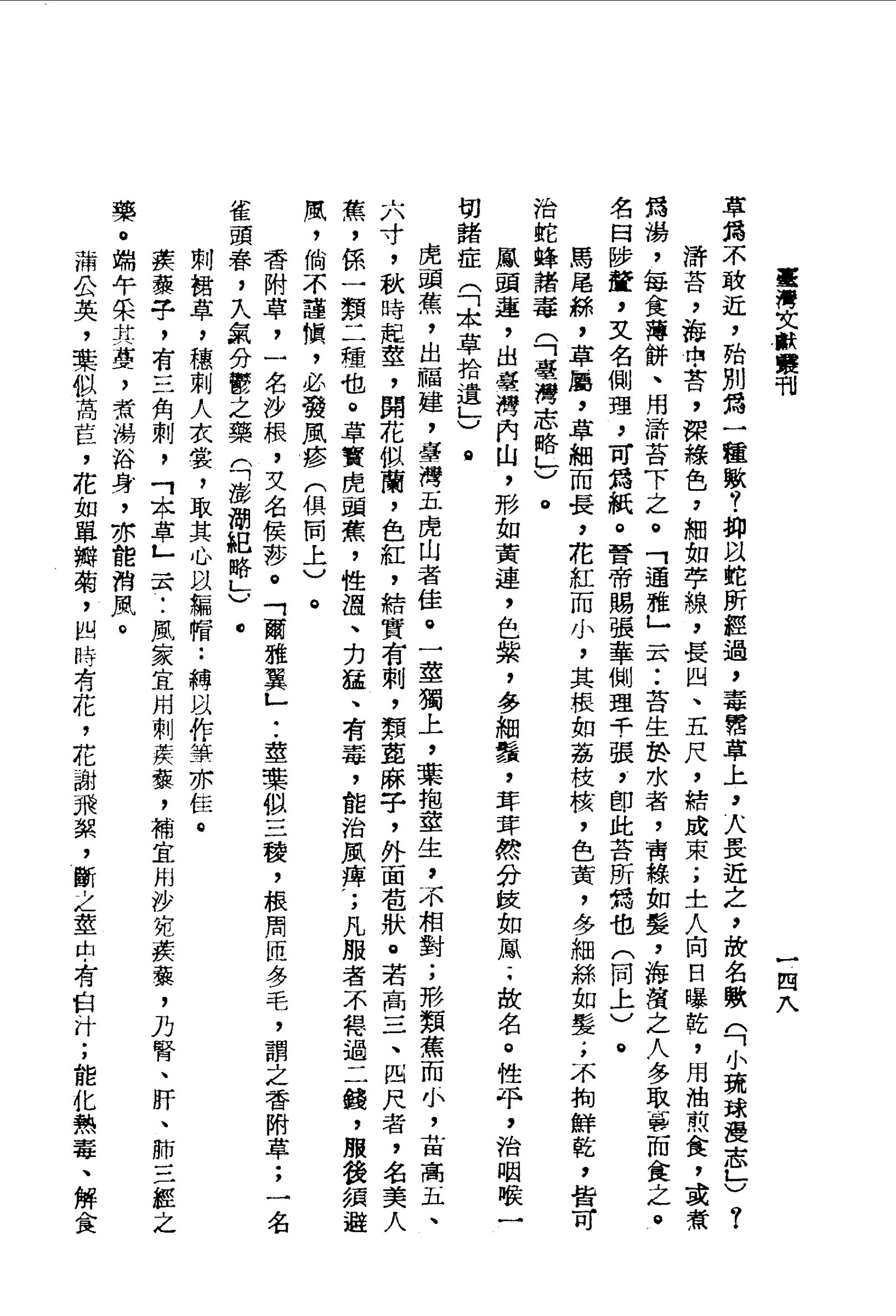 蒲公英,葉似萵苣,花如單瓣菊,四時有花,花謝飛絮,斷之莖中有白汁;能化熱毒、解食毒、消腫、核治乳癰;為通淋妙品.