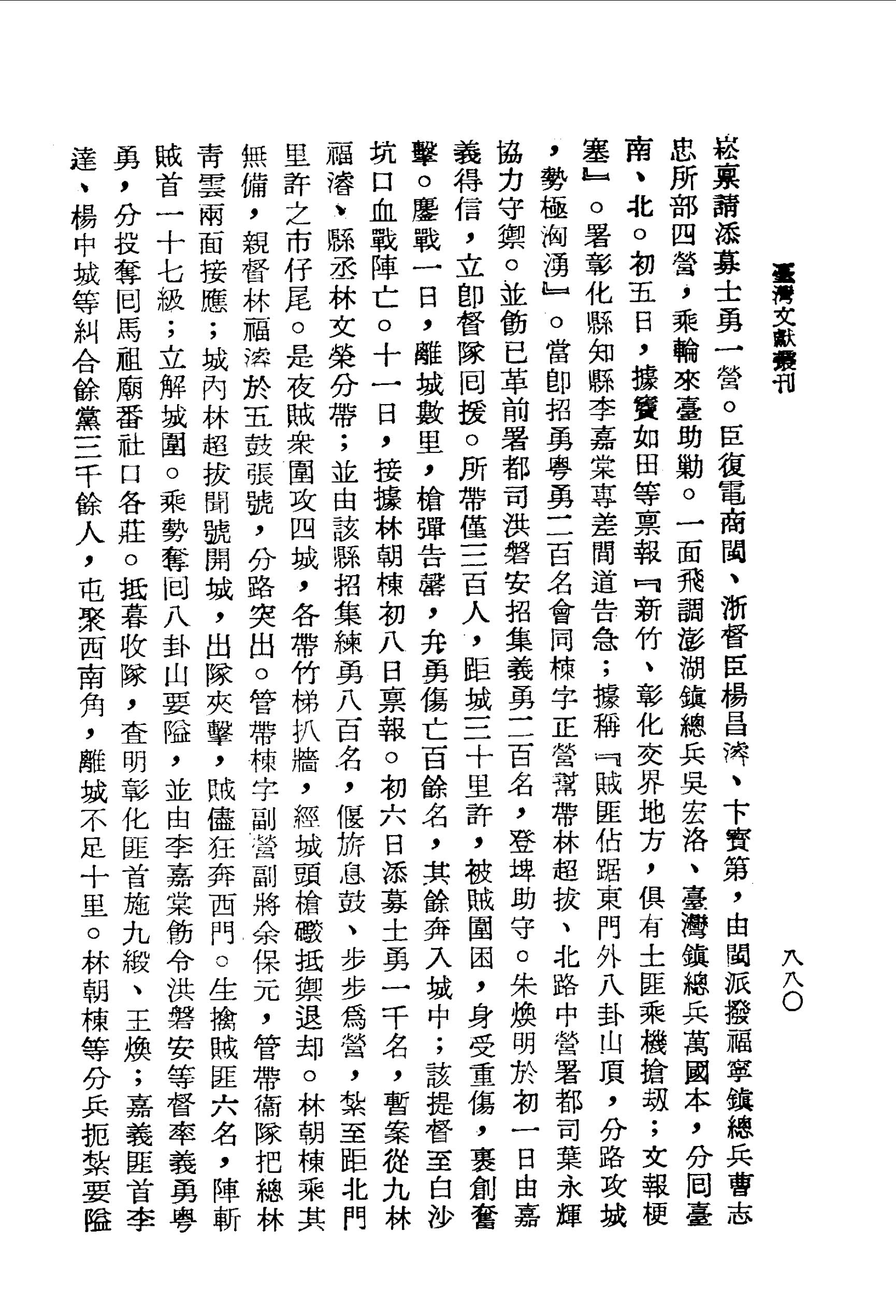 該兩軍因癘疫之後,病勇過多;而臺南各軍遠在埤南,臺灣道唐景崧稟請添募士勇一營.