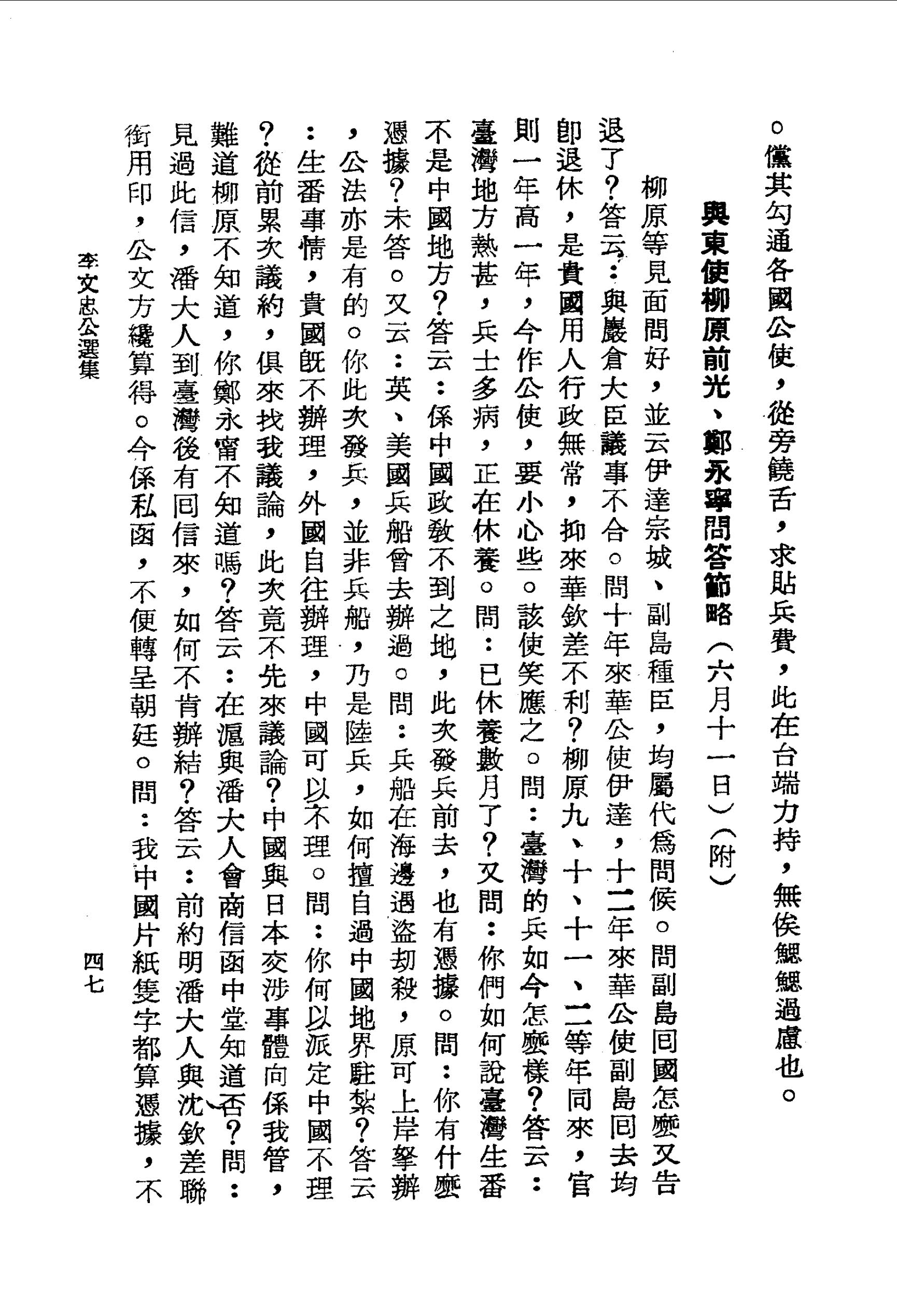 臺灣的兵如今怎麼樣?答云:臺灣地方熱甚,兵士多病,正在休養。