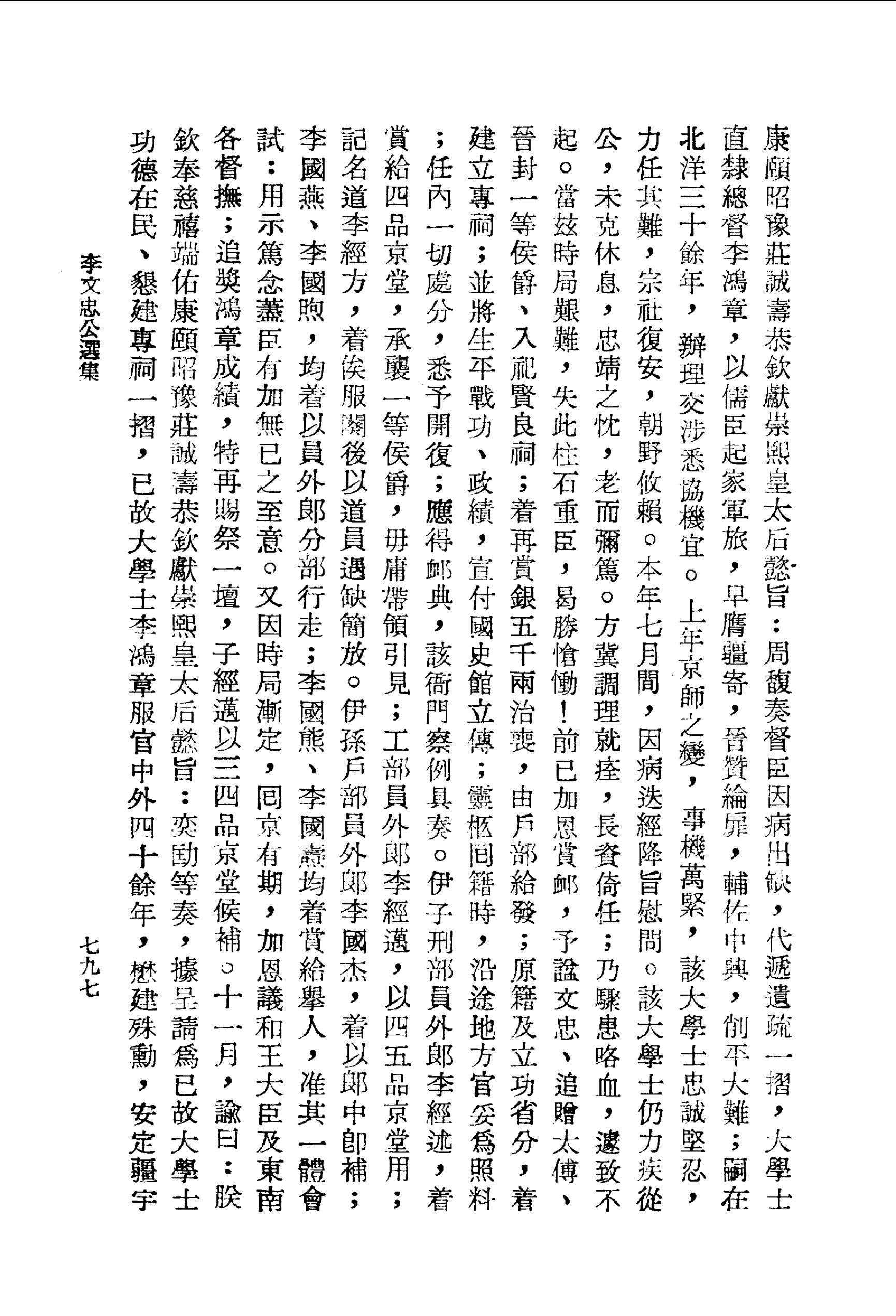 本年七月間,因病迭經降旨慰問。該大學士仍力疾從公,未克休息,忠靖之忱,老而彌篤。方冀調理就痊,長資倚任;乃驟患咯血,遽致不起。當茲時局艱難,失此柱石重臣,曷勝愴慟!