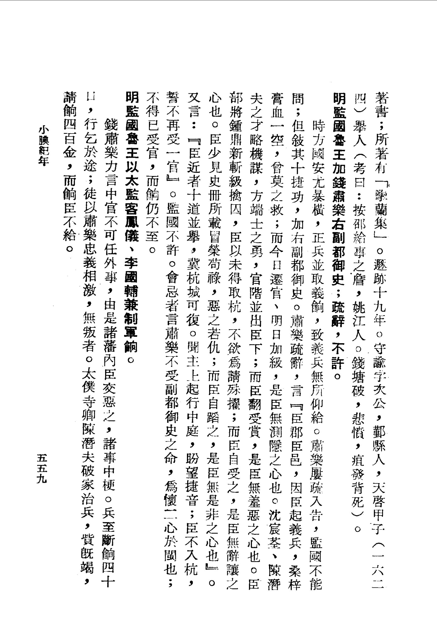 守諭字次公,鄞縣人,天啟甲子(一六二四)舉人(考曰:按邵給事之詹,姚江人。錢塘破,悲憤,疽發背死)。
