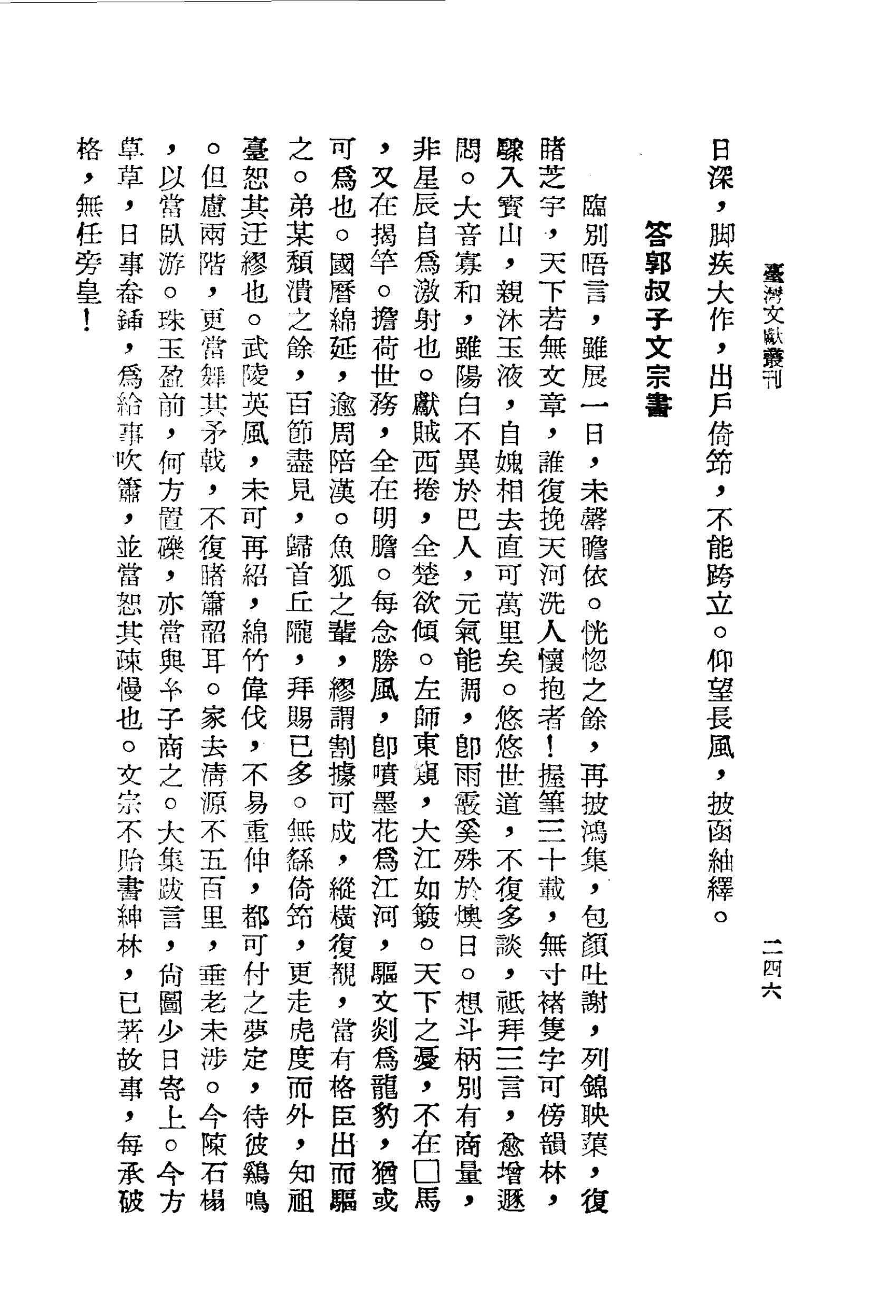 四海蜩螗,密勿淵深,興言日深,腳疾大作,出戶倚笻,不能跨立。仰望長風,披函紬繹。