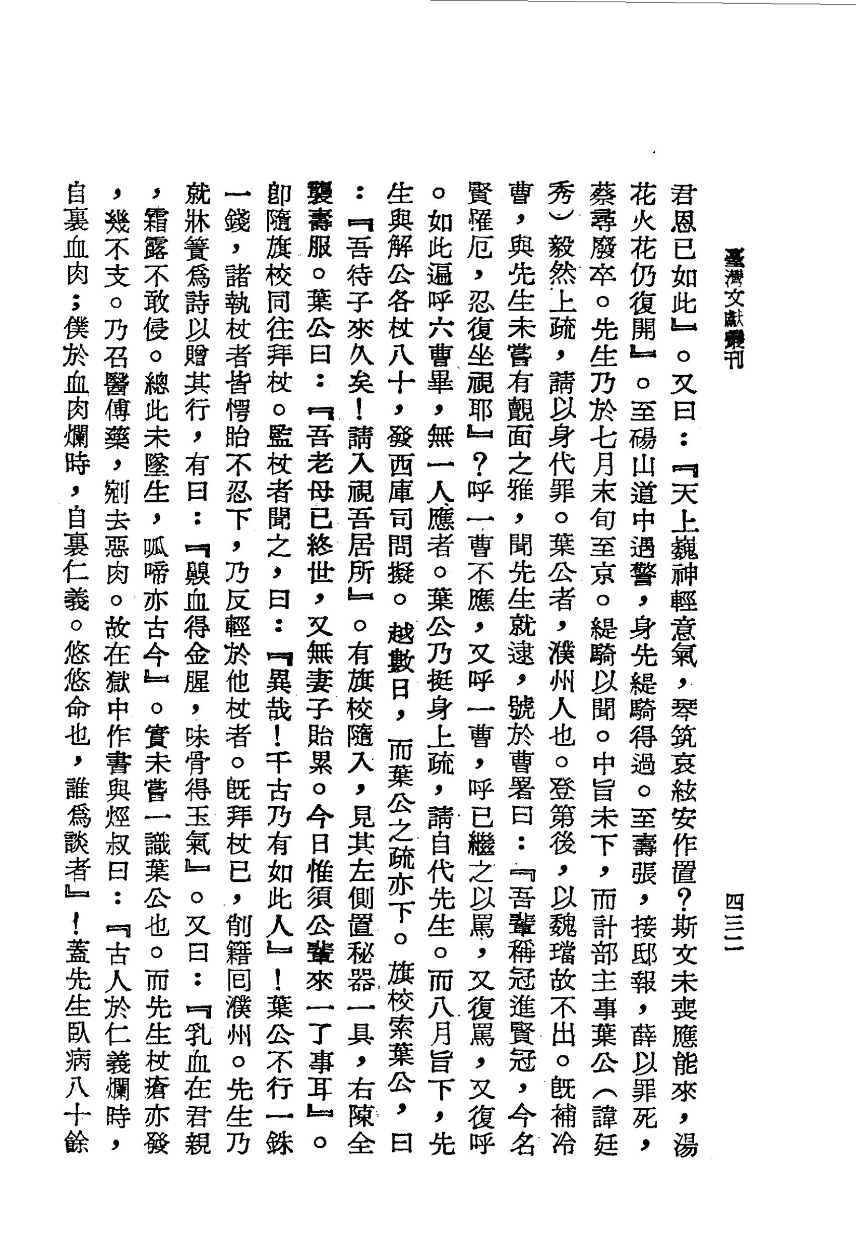 實未嘗一識葉公也。而先生杖瘡亦發,幾不支。乃召醫傅藥,剜去惡肉。故在獄中作書與烴叔曰:『古人於仁義爛時,自裏血肉;僕於血肉爛時,自裏仁義。悠悠命也,誰為談者』!