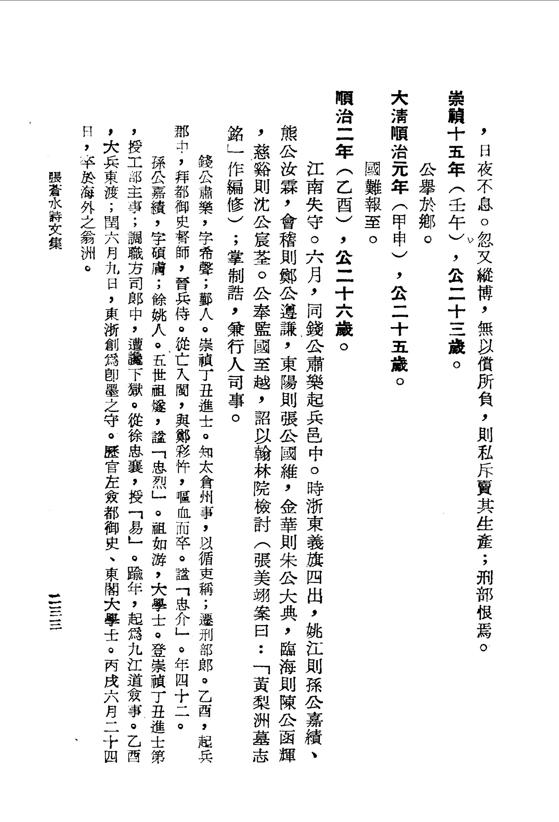 錢公肅樂,字希聲;鄞人。崇禎丁丑進士。知太倉州事,以循吏稱;遷刑部郎。乙酉,起兵郡中,拜都御史督師,晉兵侍。從亡入閩,與鄭彩忤,嘔血而卒。