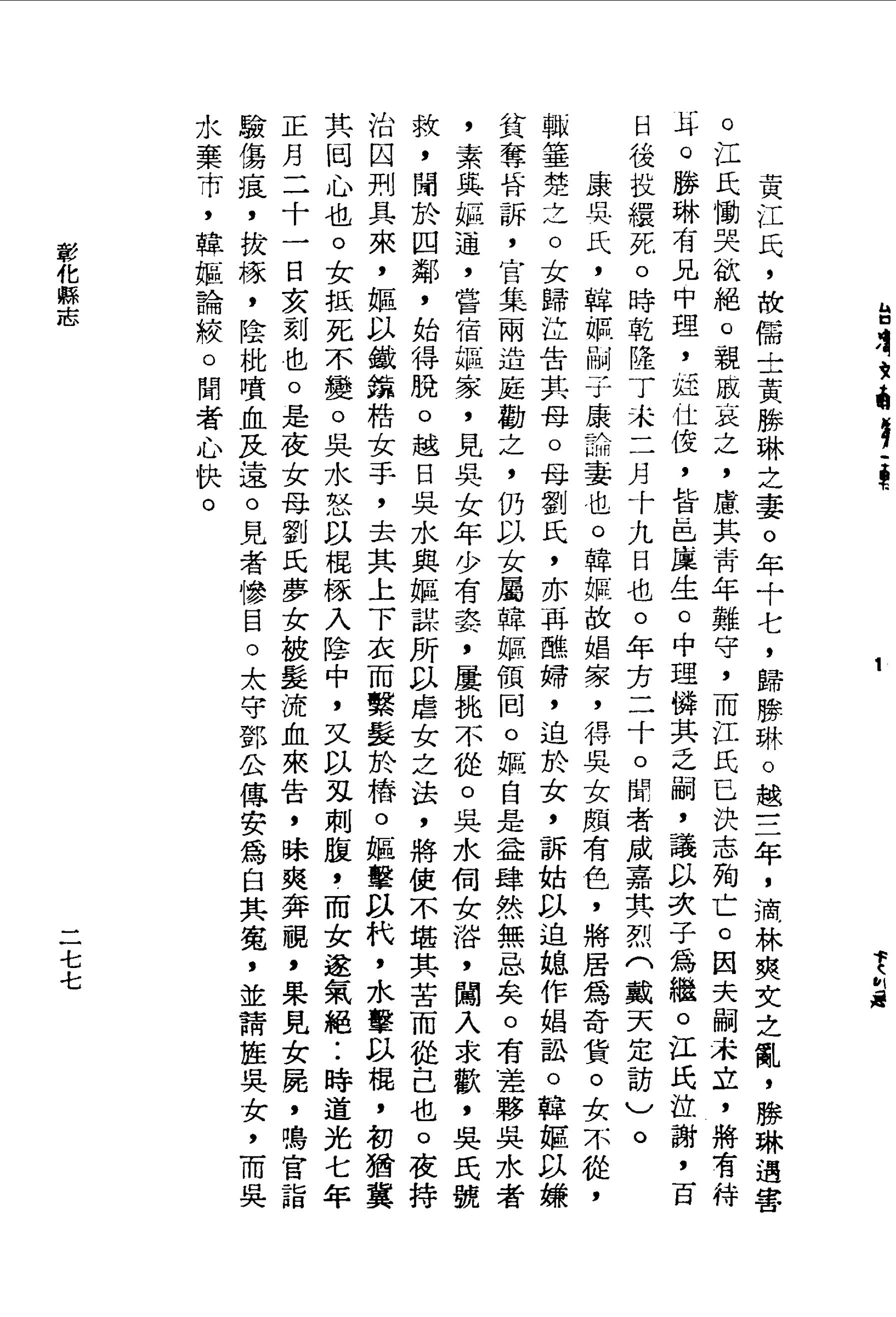 越日吳水與嫗謀所以虐女之法,將使不堪其苦而從己也.夜持治囚刑具來,嫗以鐵梏女手,去其上下衣而繫髮於樁.嫗擊以杙,水擊以棍,初猶冀其回心也.女抵死不變.吳水怒以棍椓入陰中,又以刃刺腹,而女遂氣絕:時道光七年正月二十一日亥刻也.是夜女母劉氏夢女被髮流血來告,昧爽奔視,果見女屍,鳴官詣驗傷痕,拔椓,陰枇噴血及遠.見者慘目.太守鄧公傳安為白其冤,並請旌吳女,而吳水棄市,韓嫗論絞.聞者心快.