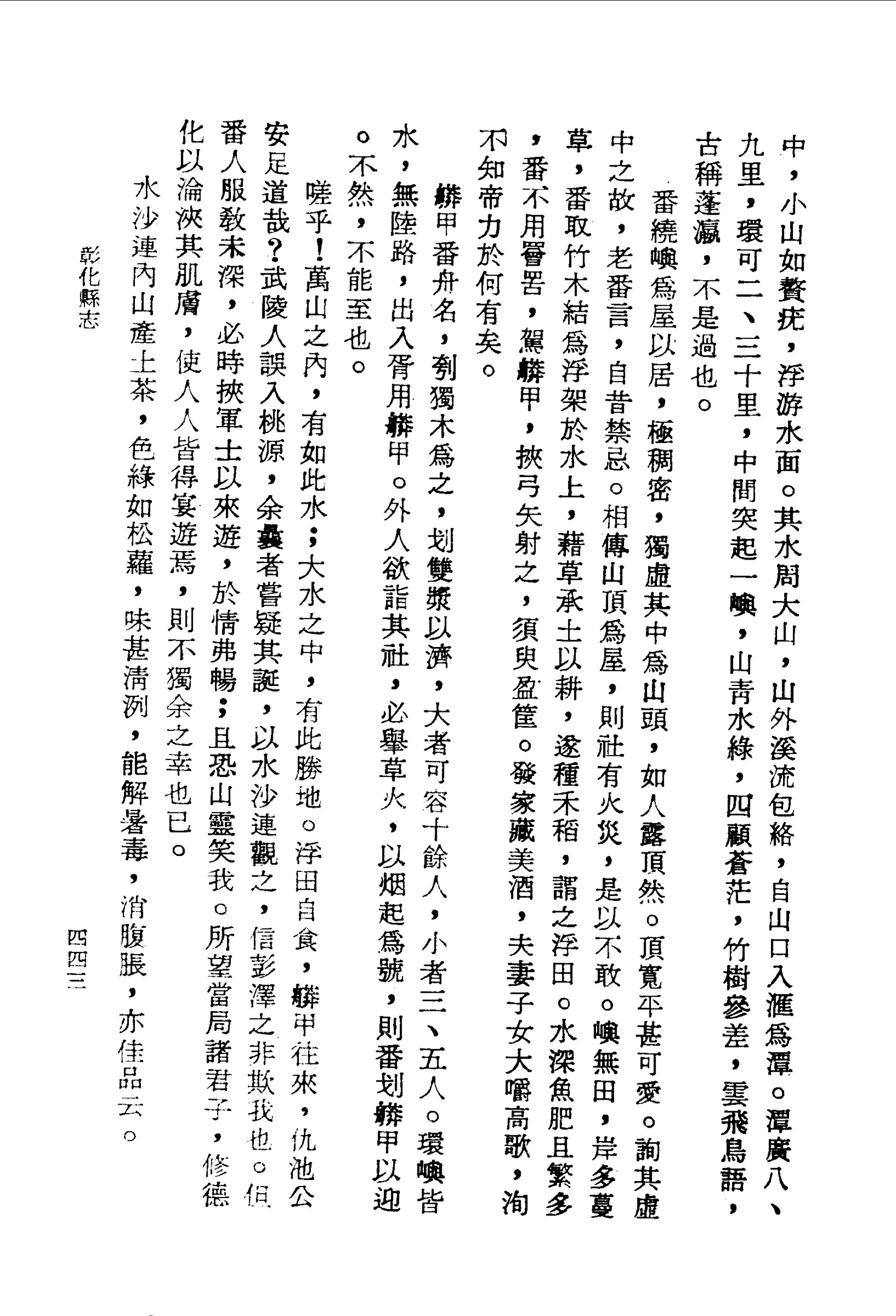 水沙連內山產土茶,色綠如松蘿,味甚清洌,能解暑毒,消腹脹,亦佳品云.