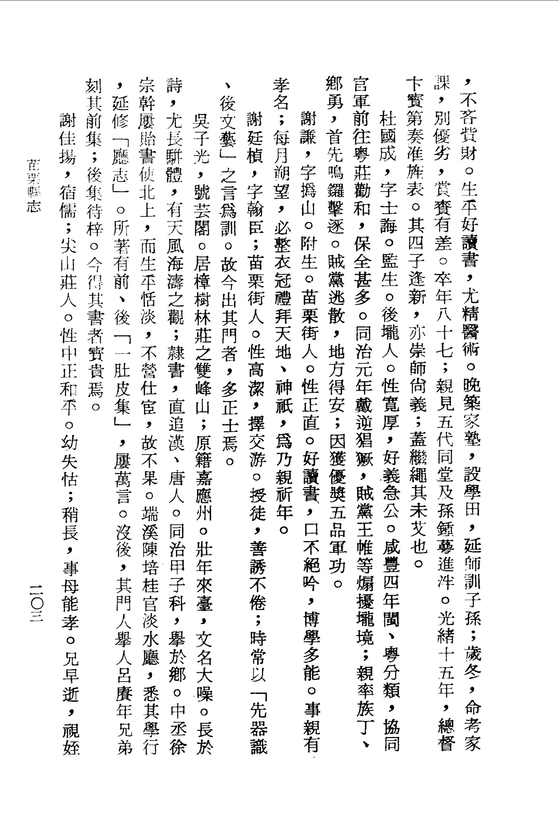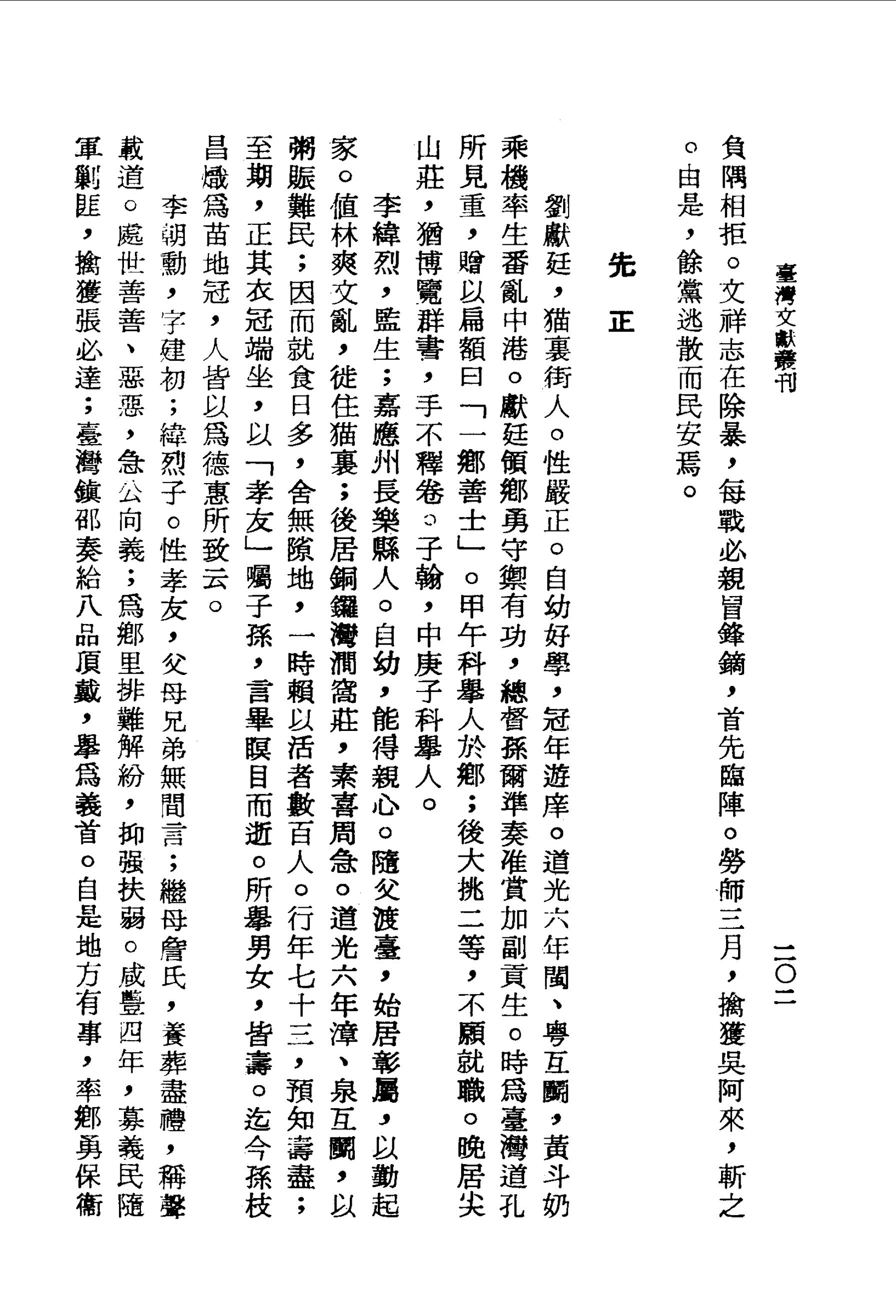 李朝勳,字建初;緯烈子.性孝友,父母兄弟無間言;繼母詹氏,養葬盡禮,稱聲載道.處世善善、惡惡,急公向義;為鄉里排難解紛,抑強扶弱.咸豐四年,募義民隨軍勦匪,擒獲張必達;臺灣鎮邵奏給八品頂戴,舉為義首.自是地方有事,率鄉勇保衛,不吝貲財.生平好讀書,尤精醫術.晚築家塾,設學田,延師訓子孫;歲冬,命考家課,別優劣,賞賚有差.