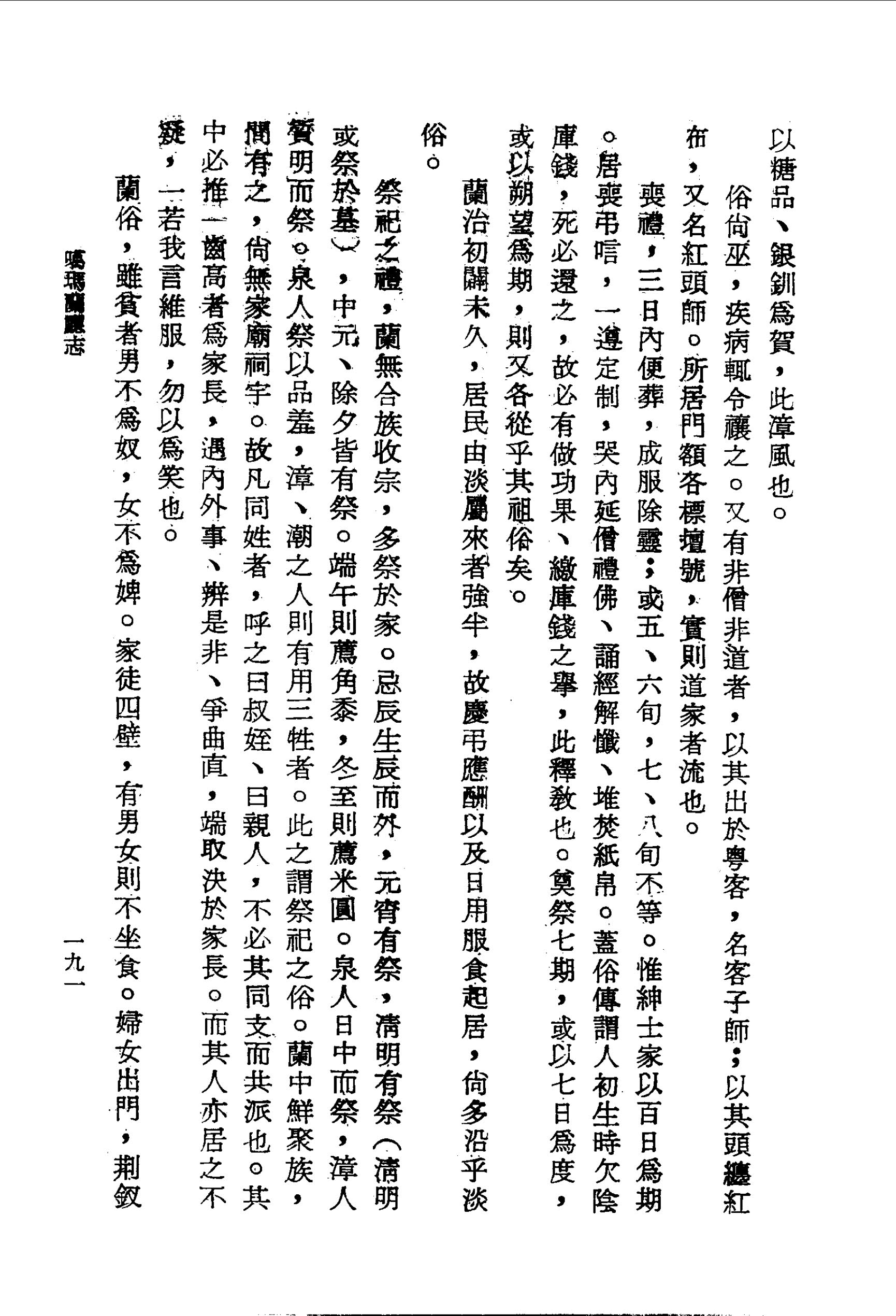 俗尚巫,疾病輒令禳之.又有非僧非道者,以其出於粵客,名客子師;以其頭纏紅布,又名紅頭師.所居門額各標壇號,實則道家者流也.