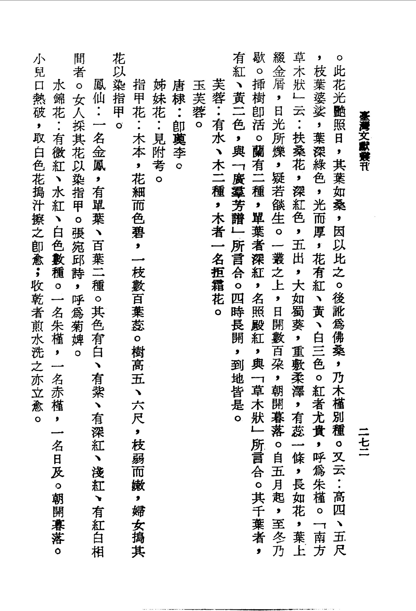 水錦花:有微紅、水紅、白色數種.一名朱槿,一名赤槿,一名日及.朝開暮落.小兒口熱破,取白色花搗汁擦之即愈;收乾者煎水洗之亦立愈.