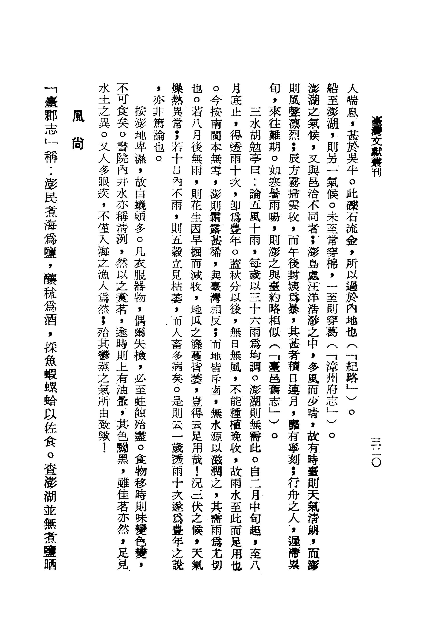 書院內井水亦稱清洌,然以之煮茗,逾時則上有油暈,其色黝黑,雖佳茗亦然,足見水土之異.又人多眼疾,不僅入海之漁人為然;殆其鬱蒸之氣所由致歟!