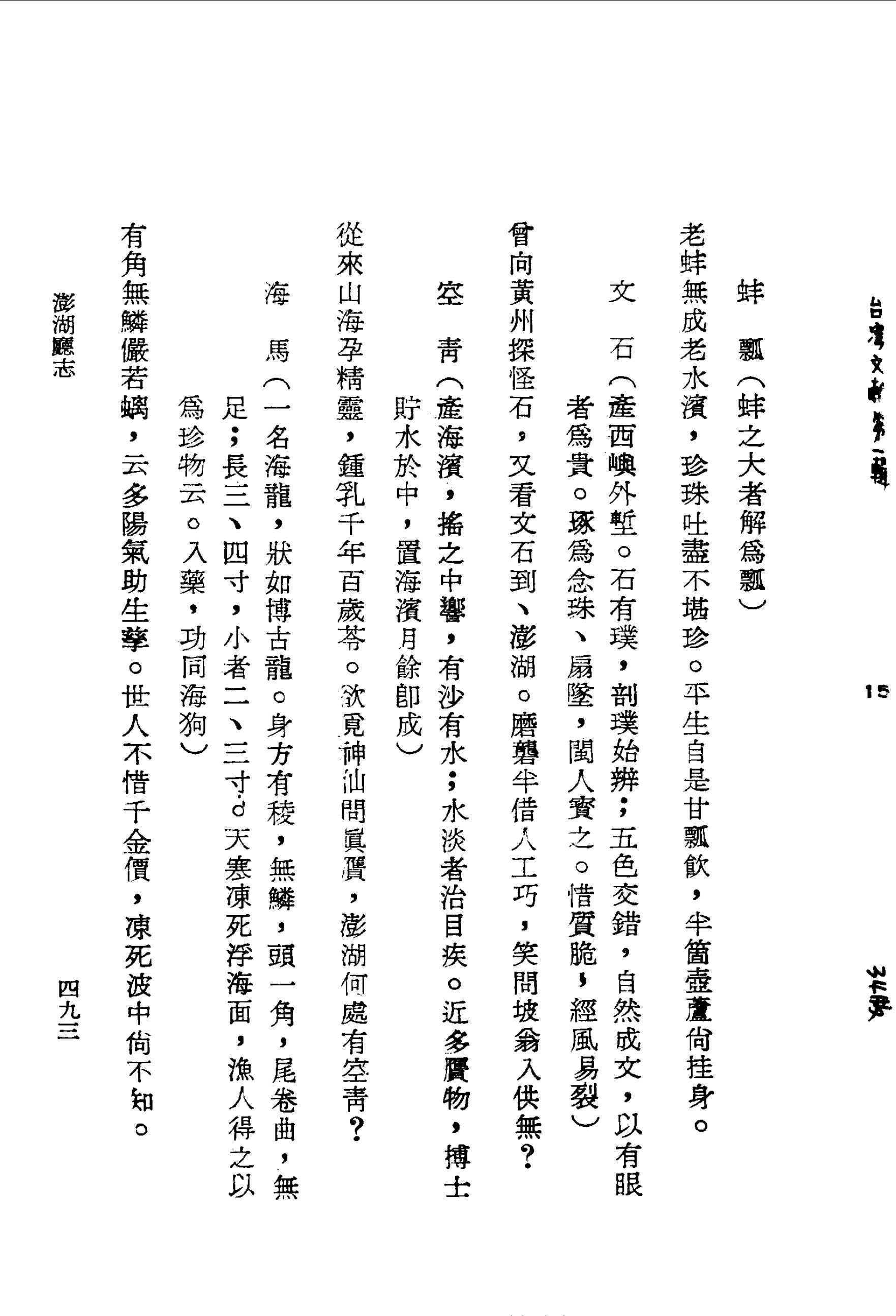 海馬(一名海龍,狀如博古龍.身方有稜,無鱗,頭一角,尾卷曲,無足;長三、四寸,小者二、三寸.天寒凍死浮海面,漁人得之以為珍物云.入藥,功同海狗)