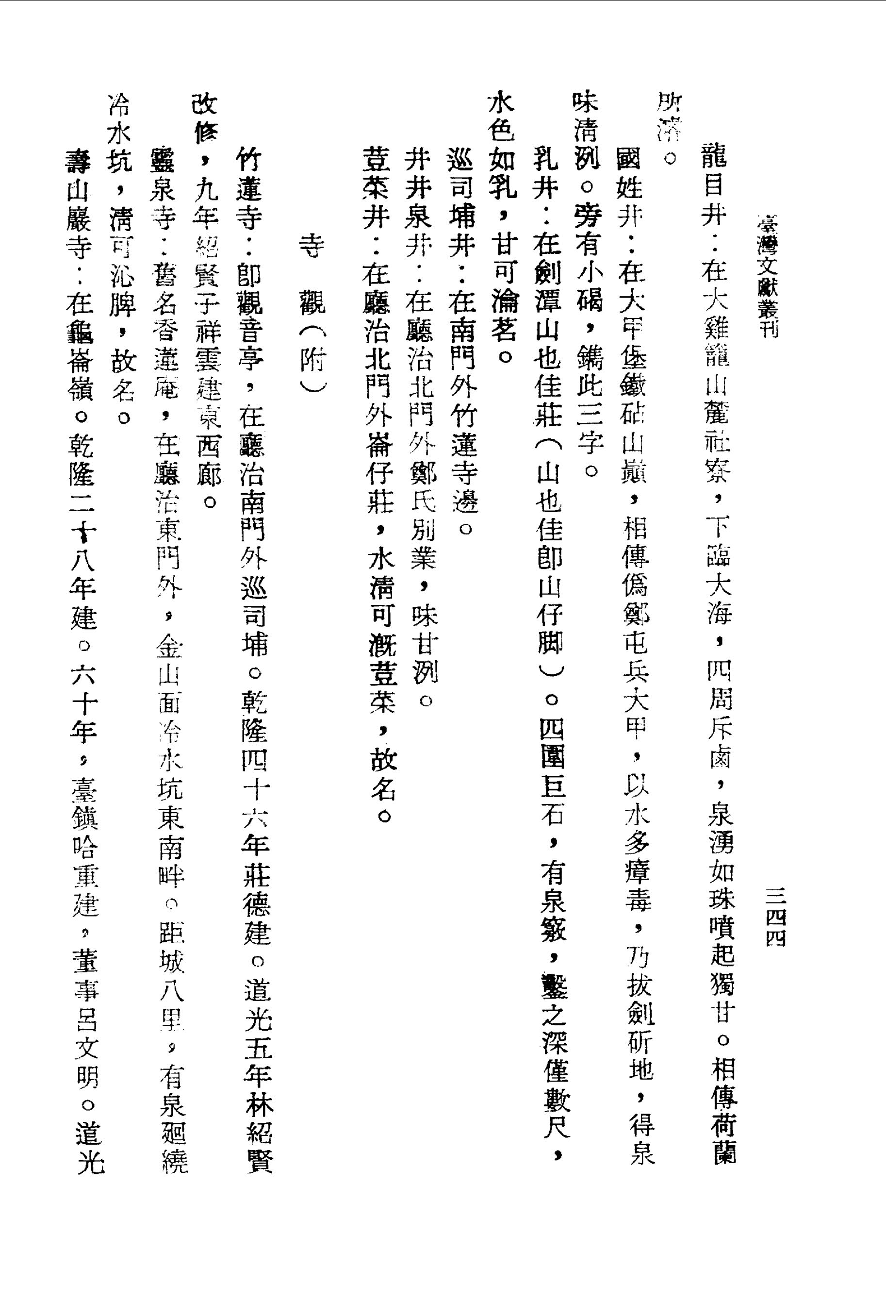 國姓井:在大甲堡鐵砧山巔,相傳偽鄭屯兵大甲,以水多瘴毒,乃拔劍斫地,得泉味清洌.旁有小碣,鐫此三字.