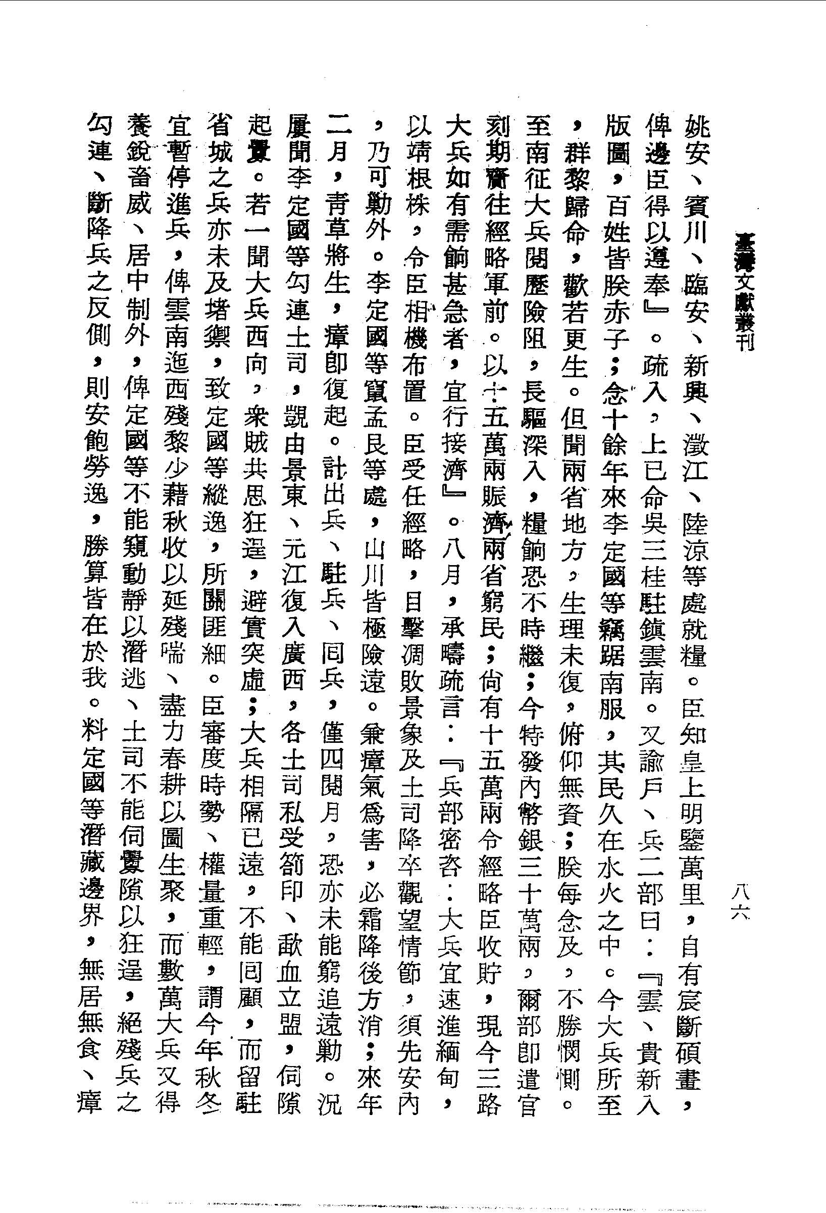 李定國等竄孟艮等處,山川皆極險遠.兼瘴氣為害,必霜降後方消;來年二月,青草將生,瘴即復起.計出兵、駐兵、回兵,僅四閱月,恐亦未能窮追遠勦.