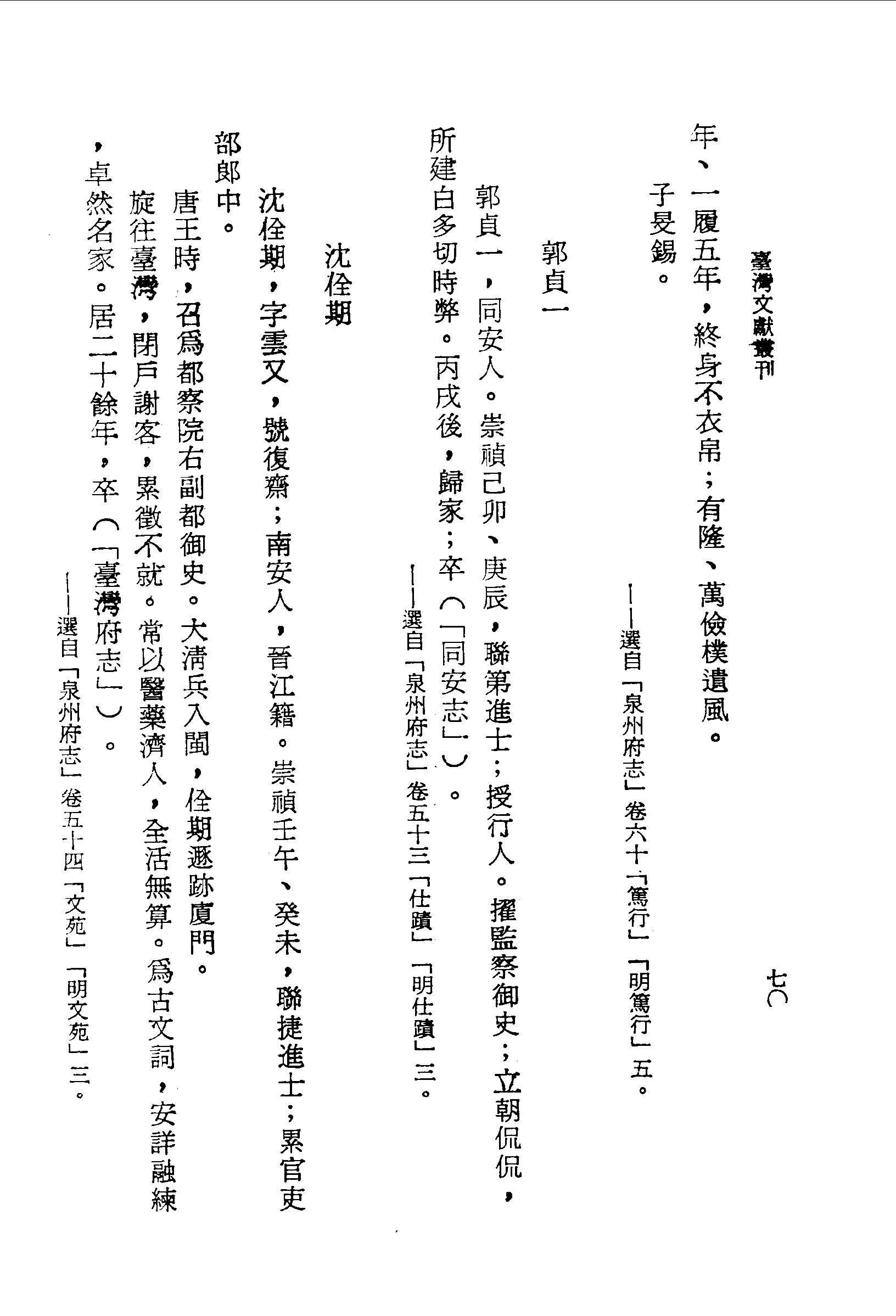旋往臺灣,閉戶謝客,累徵不就.常以醫藥濟人,全活無算.為古文詞,安詳融練,卓然名家.居二十餘年,卒(「臺灣府志」).