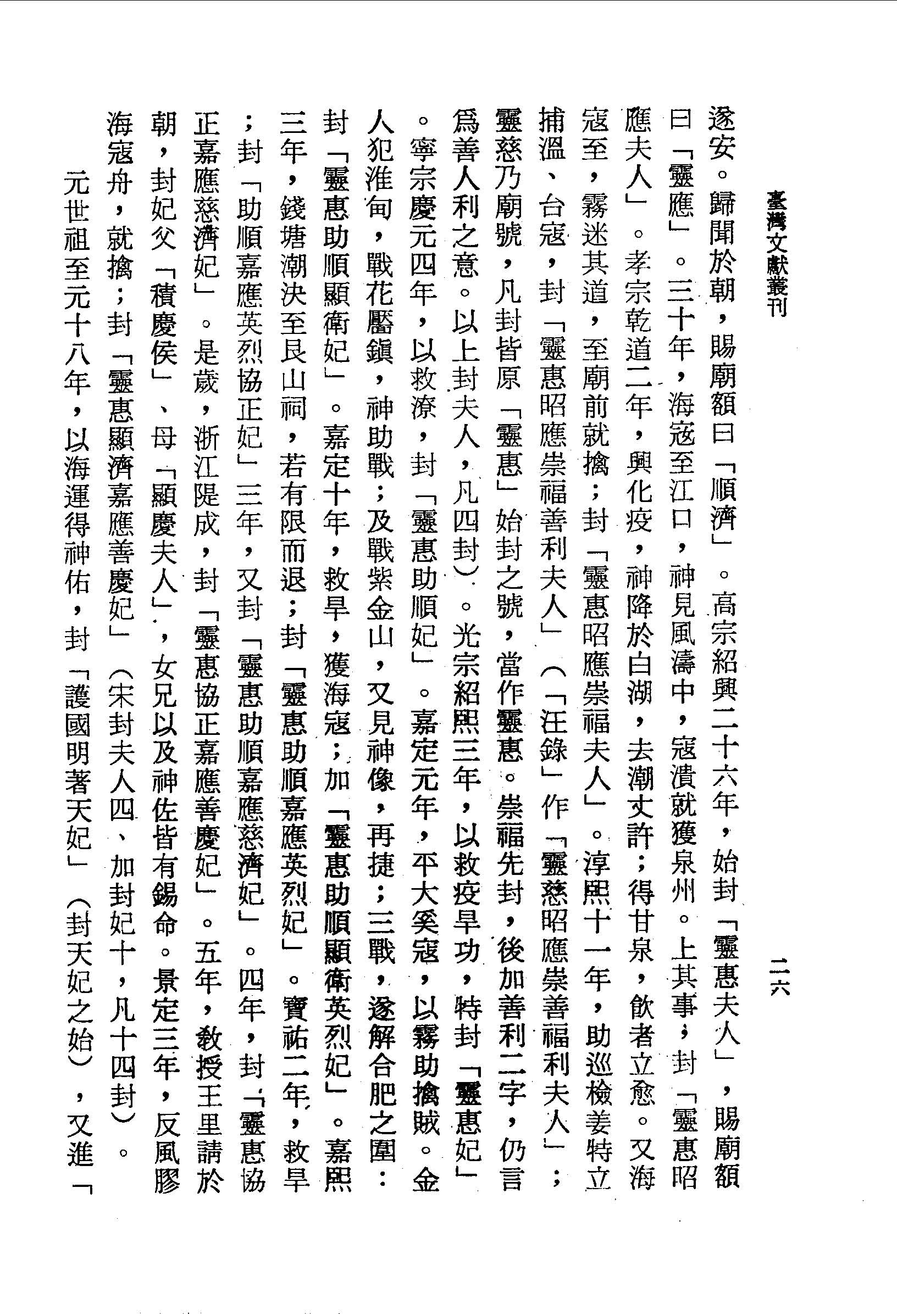 光宗紹熙三年,以救疫旱功,特封「靈惠妃」。寧宗慶元四年,以救潦,封「靈惠助順妃」。