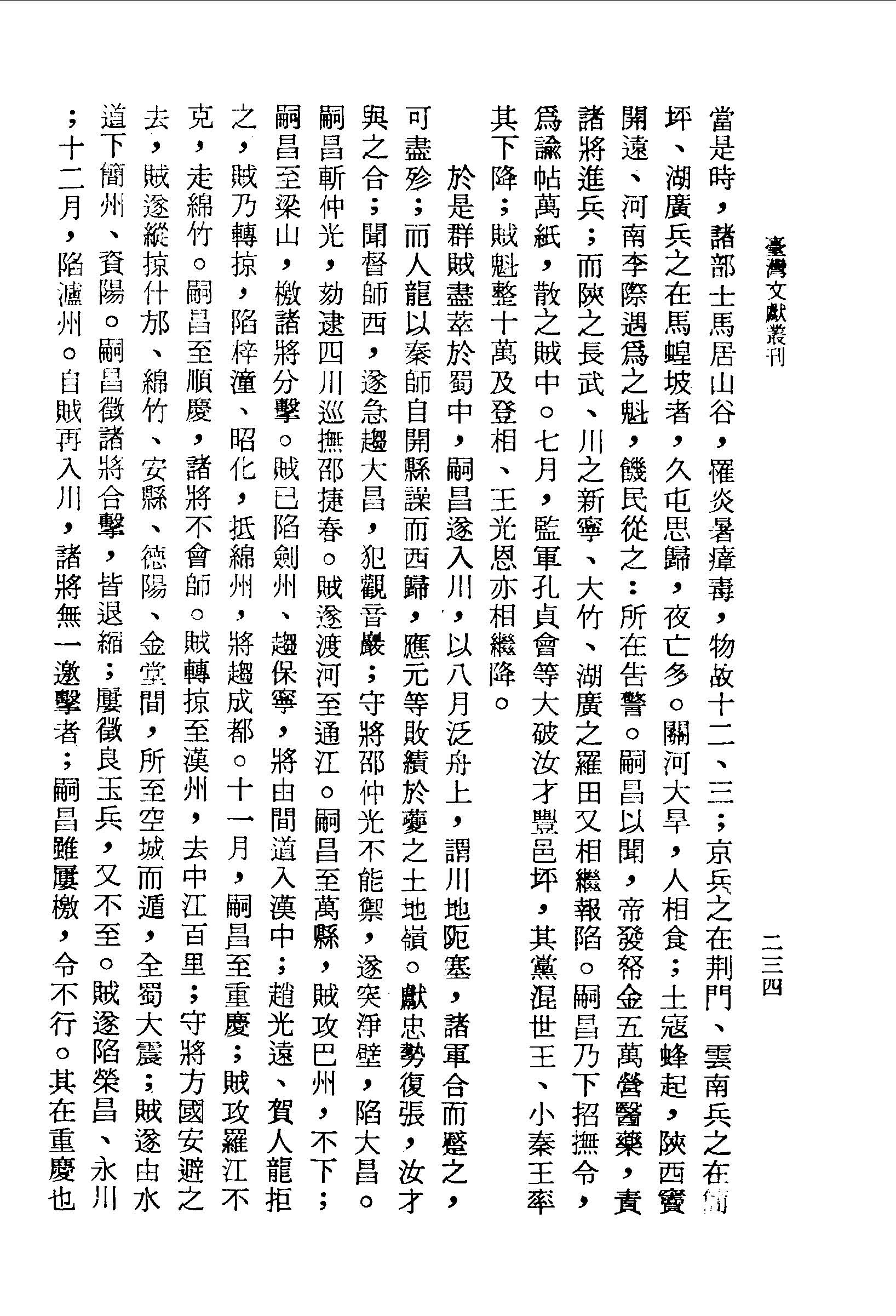 當是時,諸部士馬居山谷,罹炎暑瘴毒,物故十二、三;京兵之在荊門、雲南兵之在簡坪、湖廣兵之在馬蝗坡者,久屯思歸,夜亡多。
