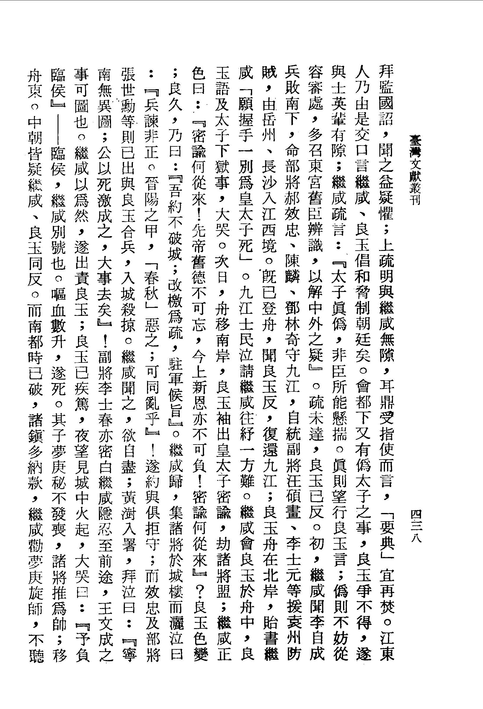繼咸以為然,遂出責良玉;良玉已疾篤,夜望見城中火起,大哭曰:『予負臨侯』──臨侯,繼咸別號也。嘔血數升,遂死