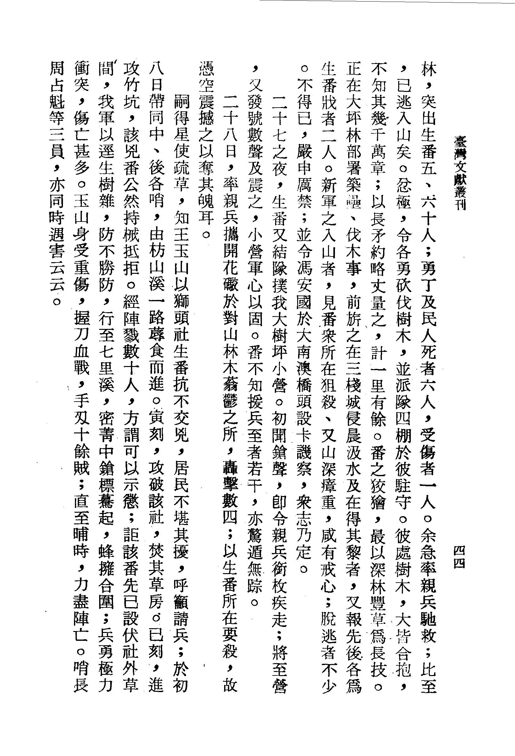 新軍之入山者,見番眾所在狙殺、又山深瘴重,咸有戒心;脫逃者不少。