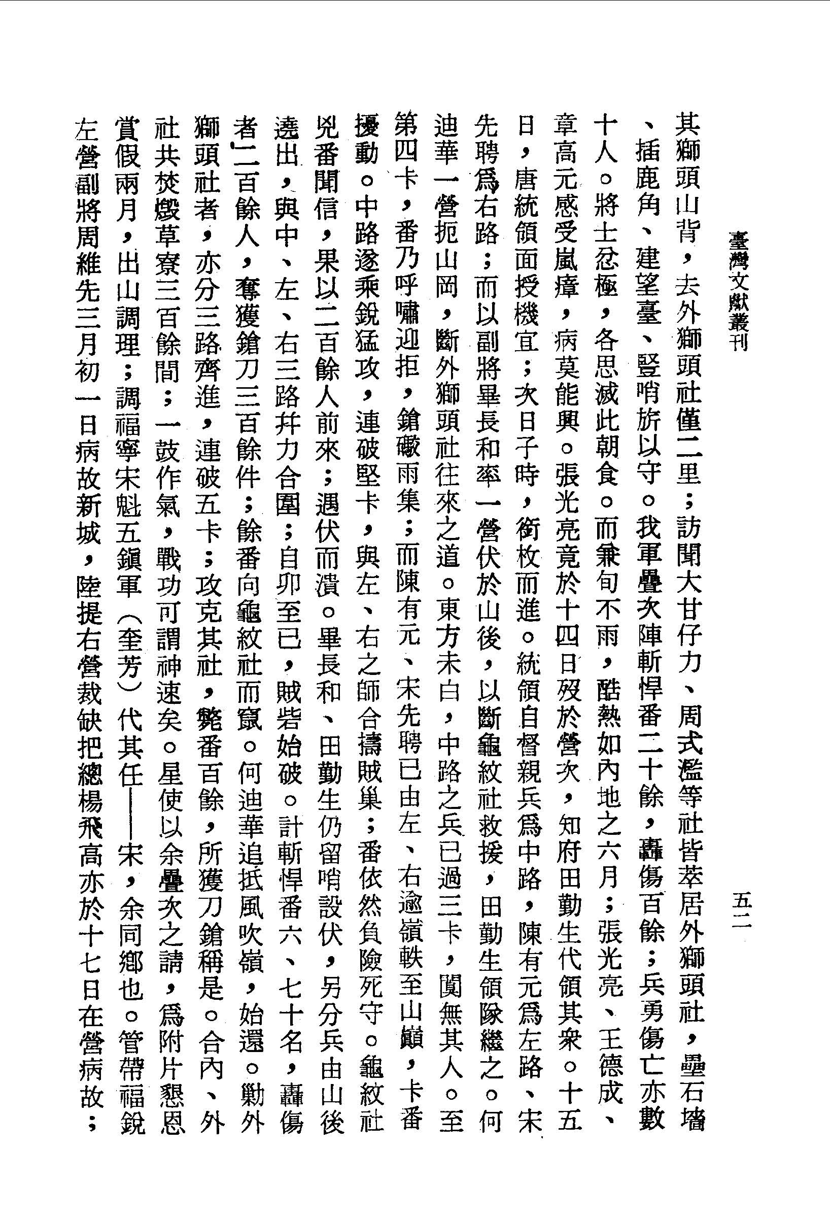 士忿極,各思滅此朝食。而兼旬不雨,酷熱如內地之六月;張光亮、王德成、章高元感受嵐瘴,病莫能興。張光亮竟於十四日歿於營次,知府田勤生代領其眾。