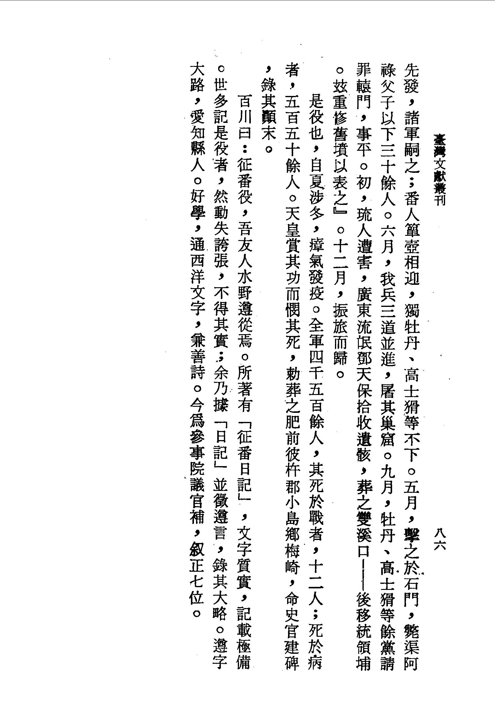 是役也,自夏涉冬,瘴氣發疫。全軍四千五百餘人,其死於戰者,十二人;死於病者,五百五十餘人。天皇賞其功而憫其死,敕葬之肥前彼杵郡小島鄉梅崎,命史官建碑,錄其顛末。