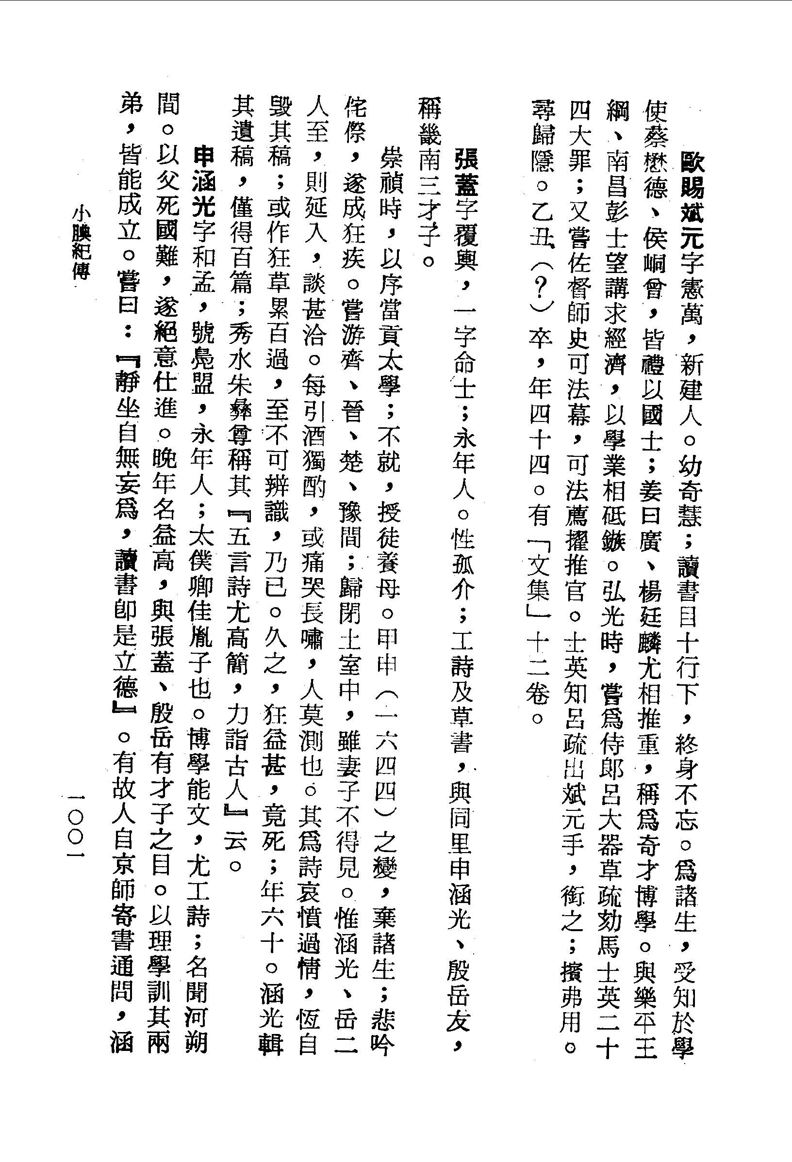 甲申(一六四四)之變,棄諸生;悲吟侘傺,遂成狂疾。