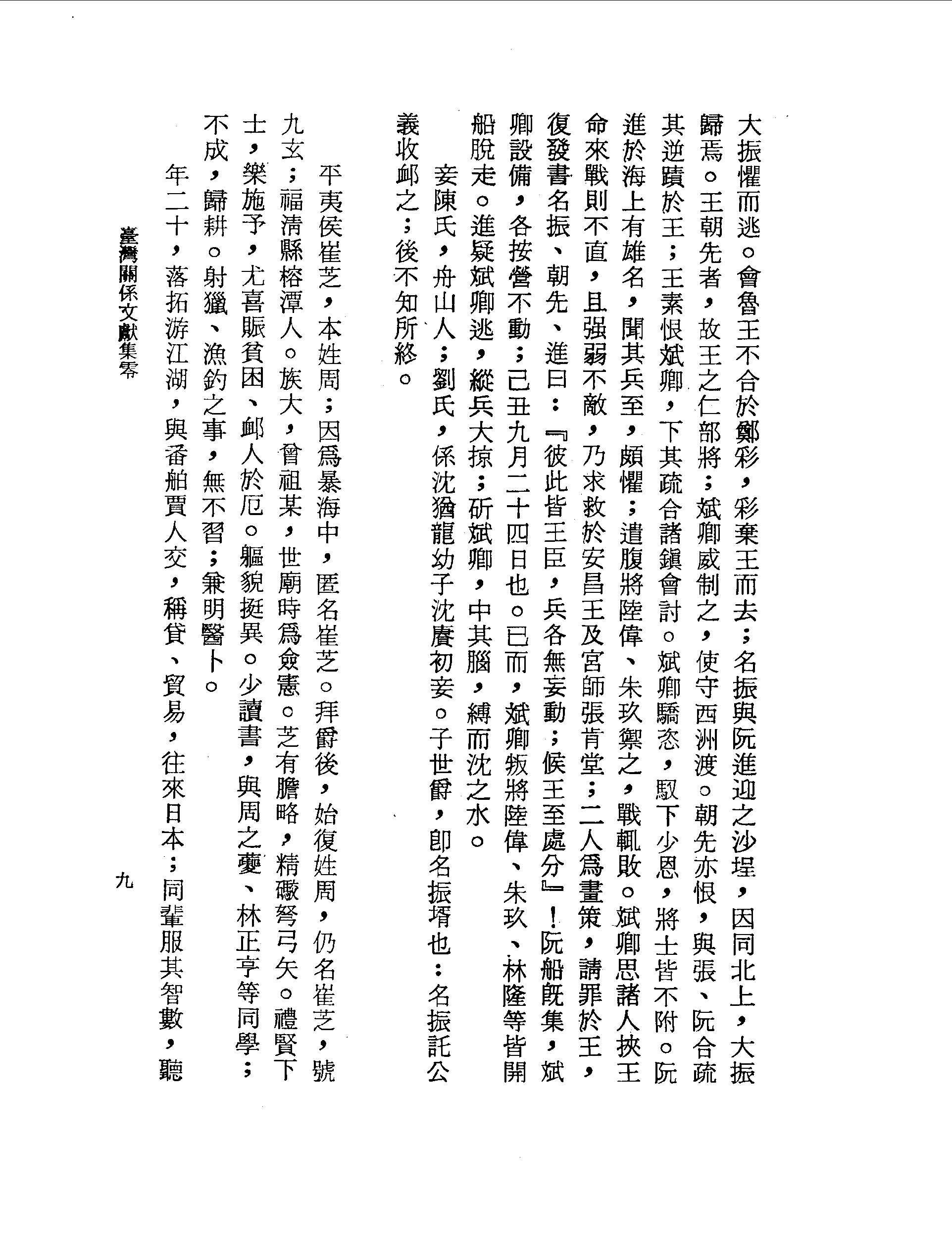 平夷侯崔芝,本姓周;因為暴海中,匿名崔芝。拜爵後,始復姓周,仍名崔芝,號九玄;福清縣榕潭人。族大,曾祖某,世廟時為僉憲。芝有膽略,精礮弩弓矢。禮賢下士,樂施予,尤喜賑貧困、卹人於厄。軀貌挺異。少讀書,與周之夔、林正亨等同學;不成,歸耕。射獵、漁釣之事,無不習;兼明醫卜。